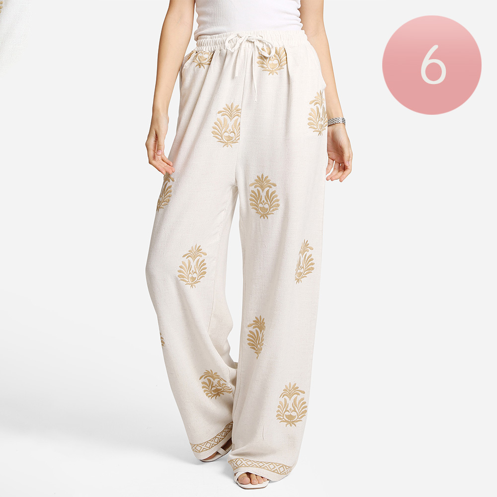 6PCS - Embroidered Wide Leg Pants