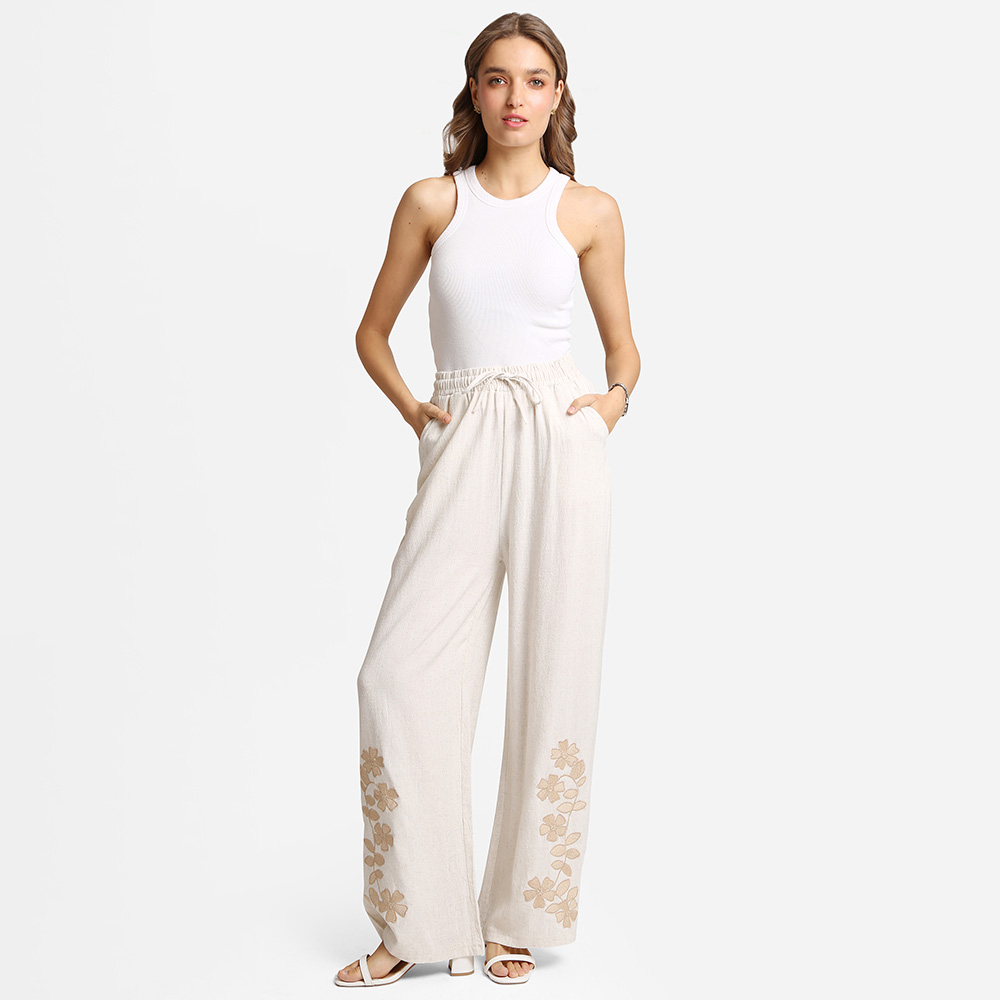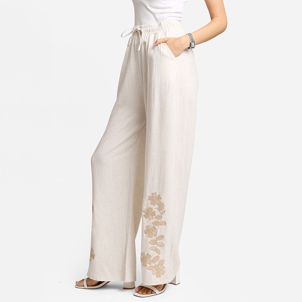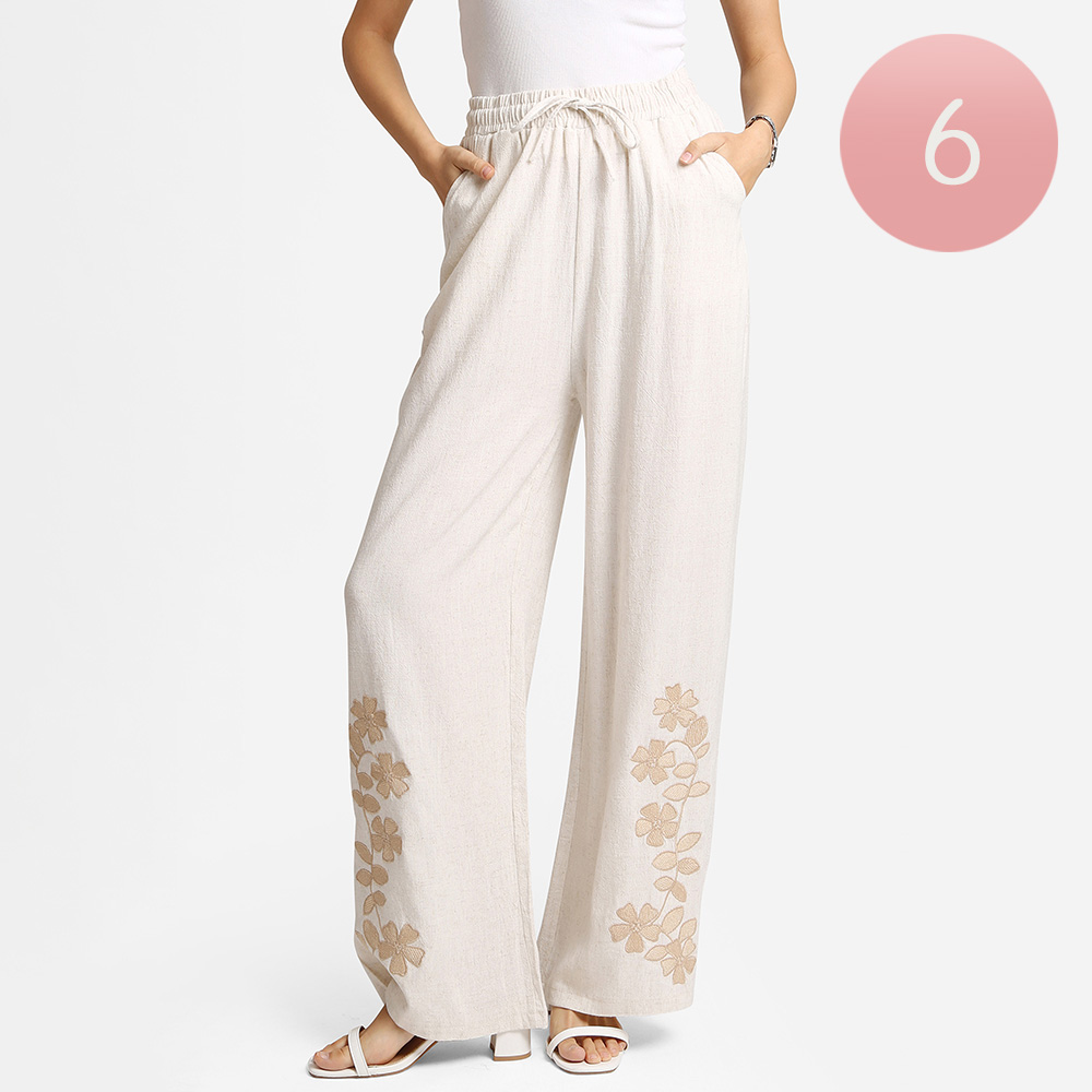 6PCS - Floral Embroidered Wide Leg Pants