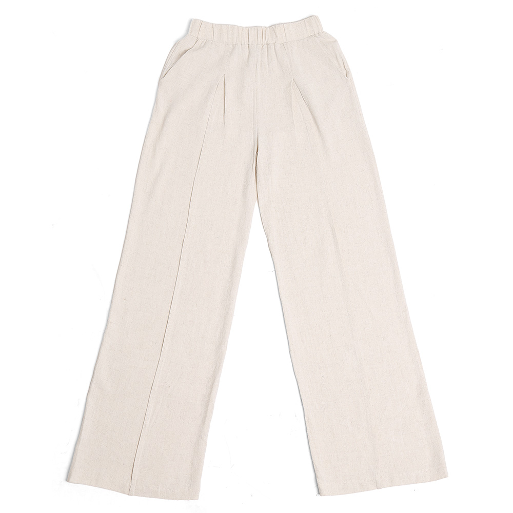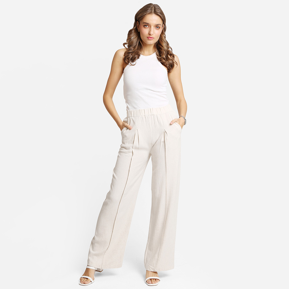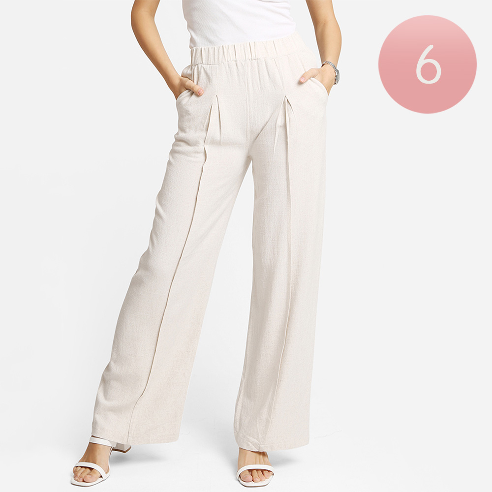 Elastic Waist Solid Front Seam Wide Leg Pants