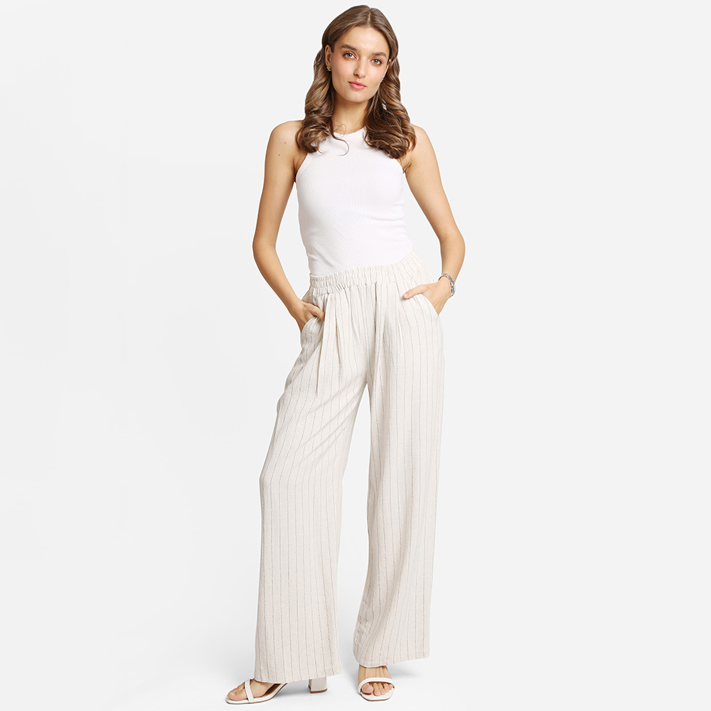 Elastic Waist Striped Wide Leg Pants