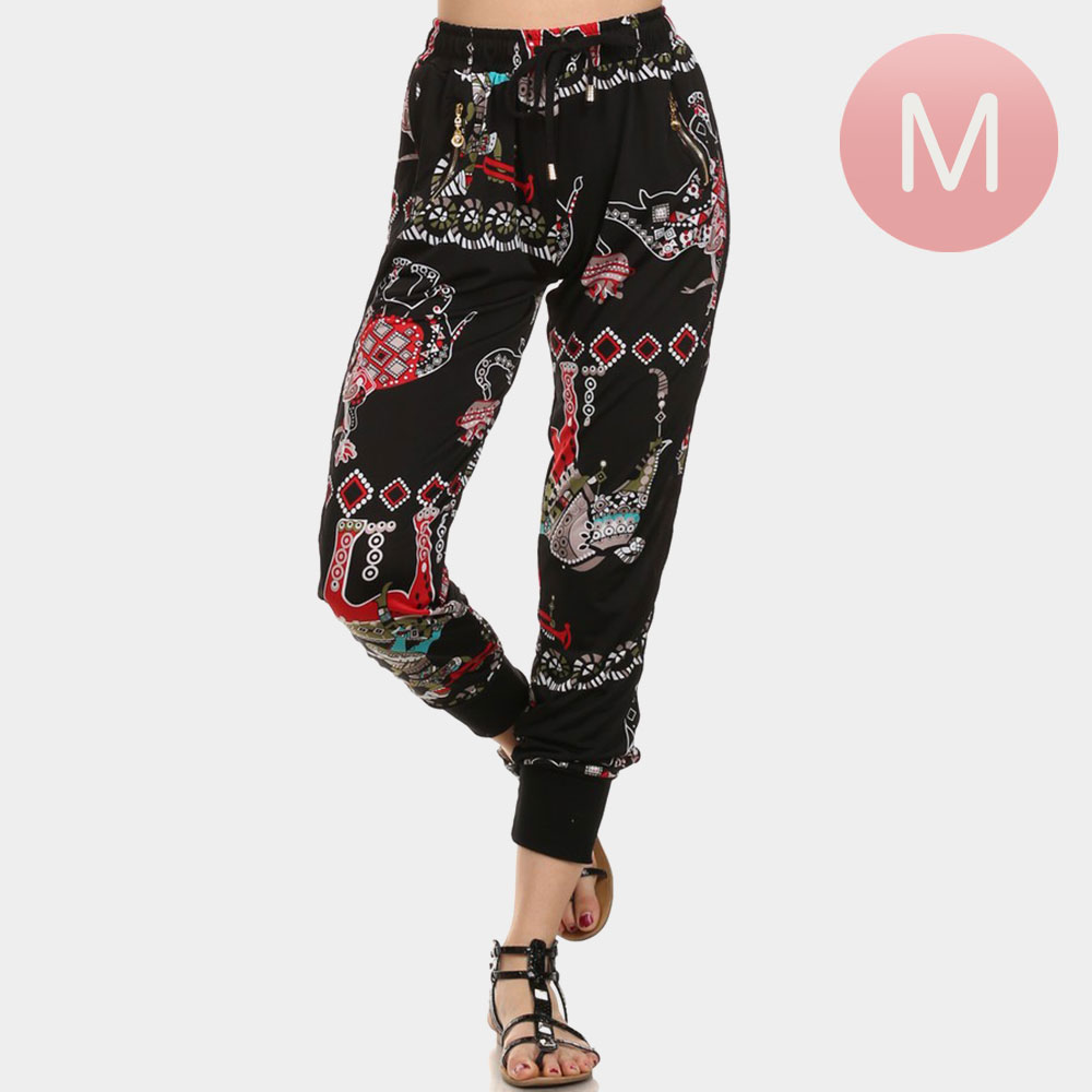 Details • Size : Medium • Women's Joggers with Elastic waist and Draw String, has ribbing at hem. Knight in Shinning armor print. 2 pocket, jogger pants with drawstring and zipper embellishment. • • Material : 92%Polyester, 8%Spandex • **Please Note : Prints may vary per piece due to fabric cutting