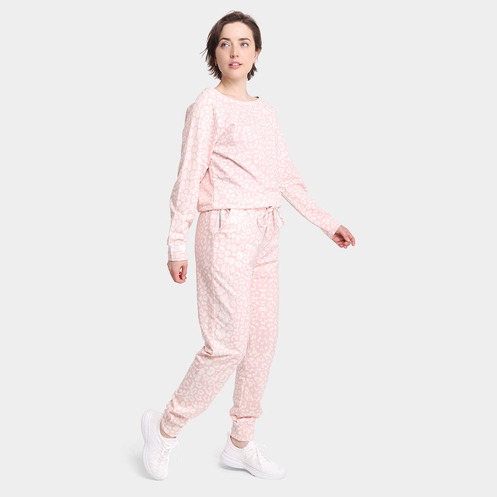 Leopard Patterned Boat Neck Loungewear Sweatshirts Top
