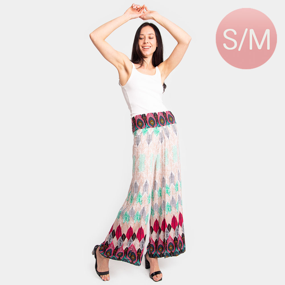 Peacock Feather Print Slit Wide Leg Palazzo Pants