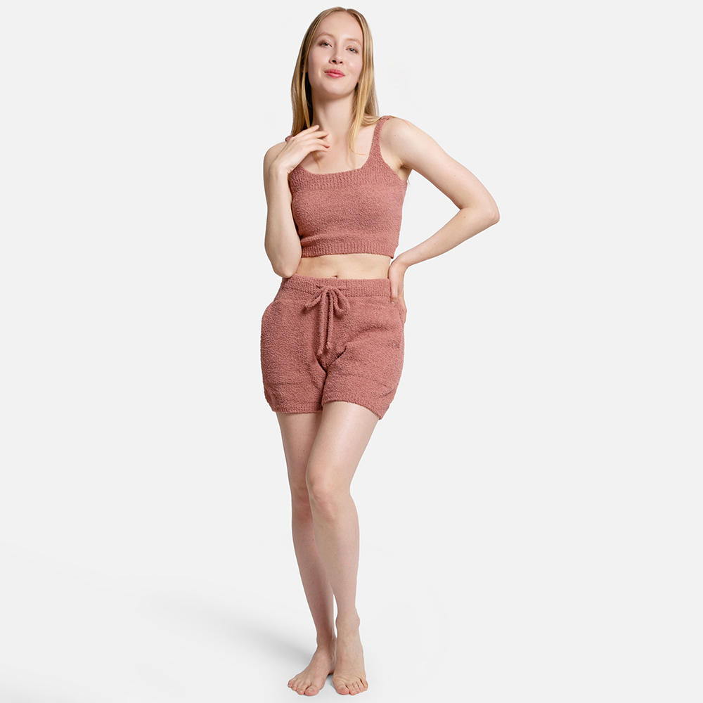 • Unwind in style with these soft knit lounge shorts featuring a flexible drawstring waistband and cozy texture. Perfect for relaxing at home or casual outings with a relaxed fit and functional side pockets.