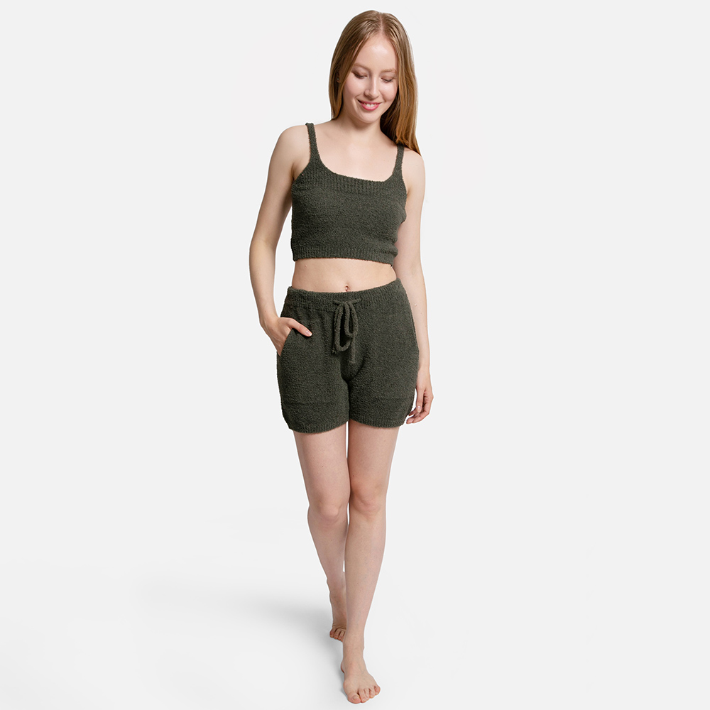 • Unwind in style with these soft knit lounge shorts featuring a flexible drawstring waistband and cozy texture. Perfect for relaxing at home or casual outings with a relaxed fit and functional side pockets.
