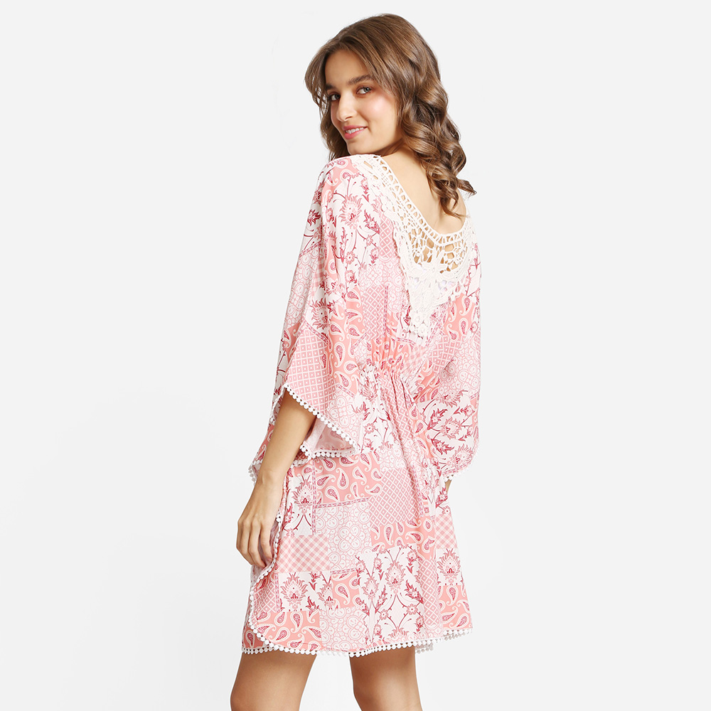 Boho Paisley Print Drawstring Mini Tunic Dress