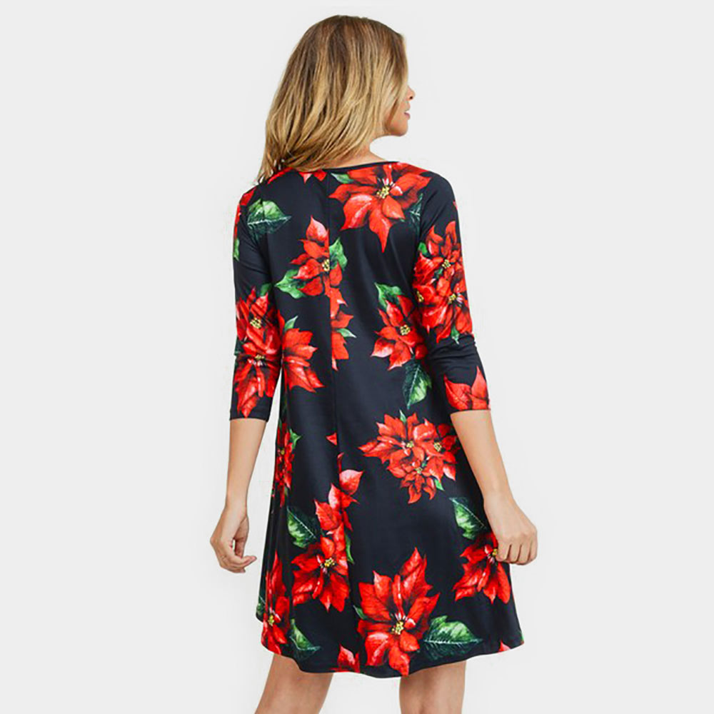 Christmas Poinsettia Flower Patterned A-Line Dress