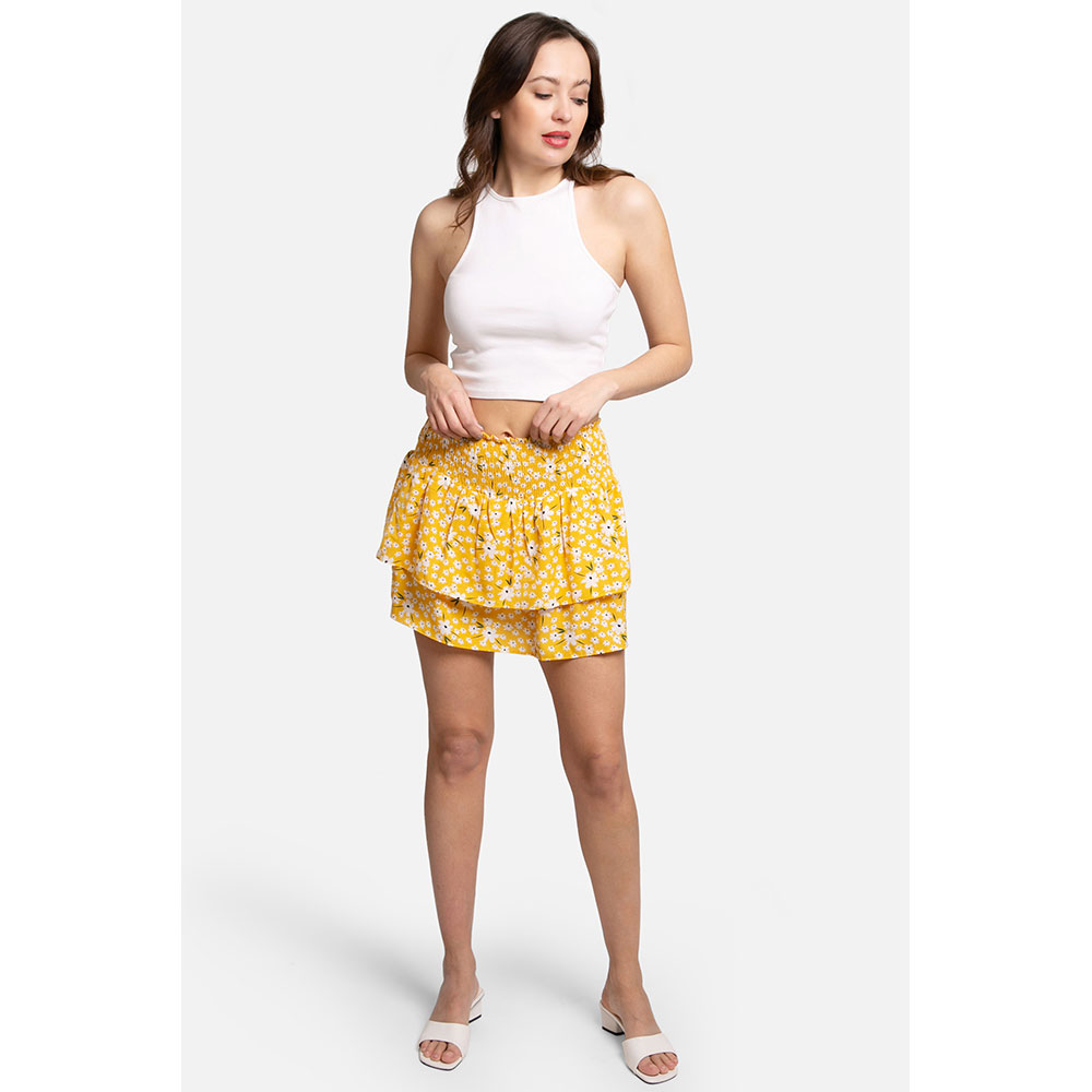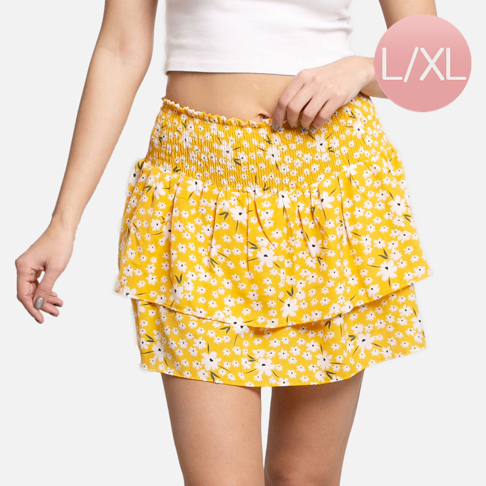 Daisy Flower Patterned Ruffle Tiered Mini Skirt