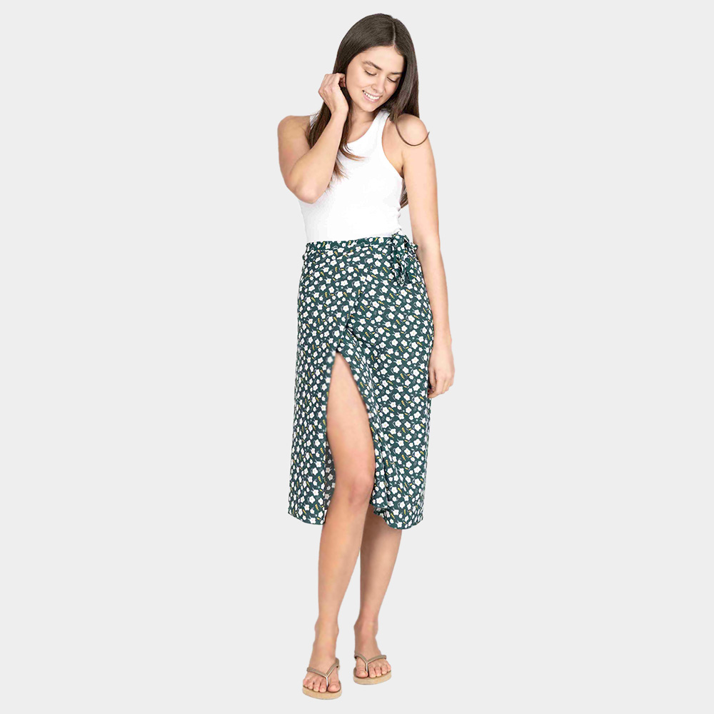 Flower Patterned Beach Cover Up Midi Wrap Skirt