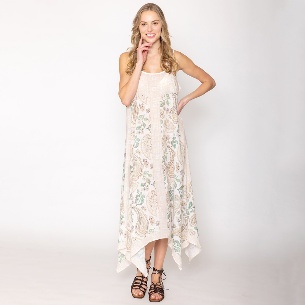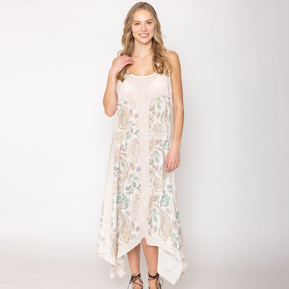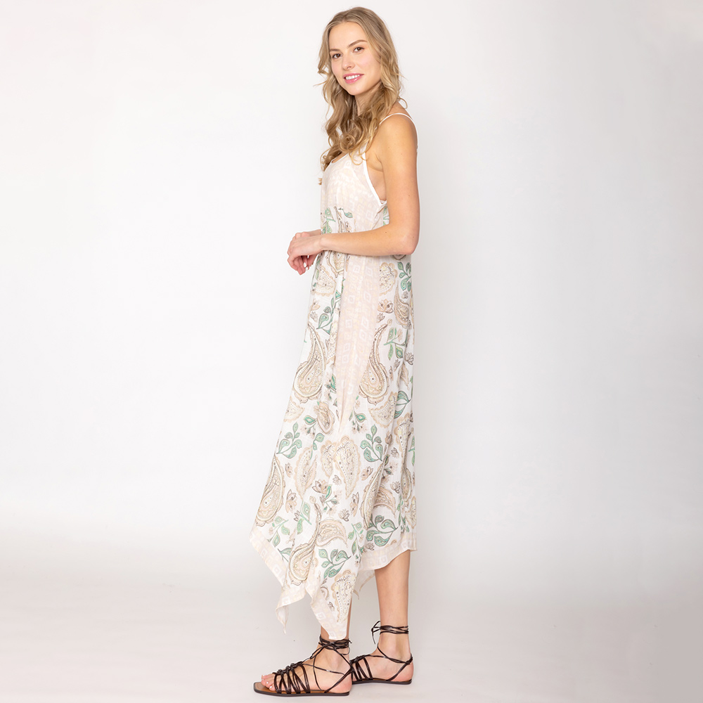 Paisley Flower Leaf Pattern Printed Flowy Long Dress