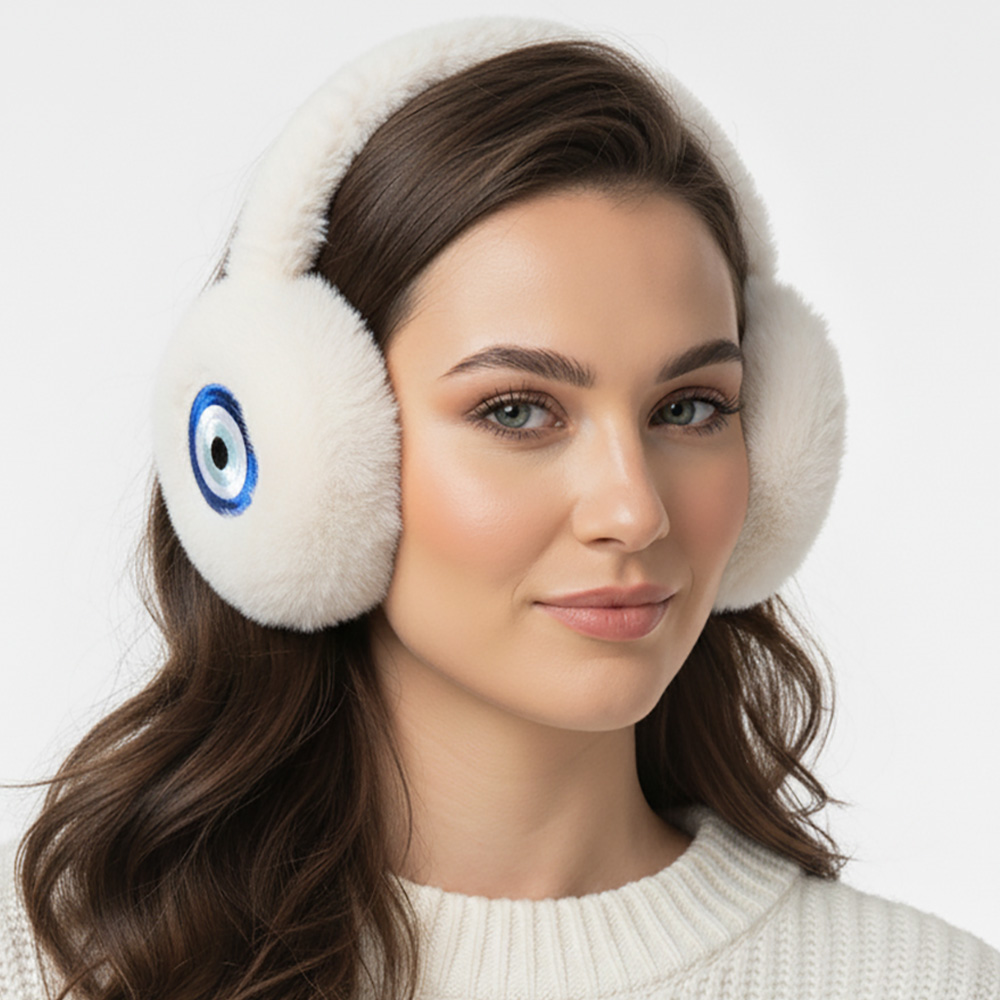 • Embrace warmth and charm with these soft plush earmuffs featuring a beautifully embroidered evil eye design. Ideal for cold-weather comfort, they combine stylish detailing with cozy coverage, perfect for adding personality to your winter wardrobe.