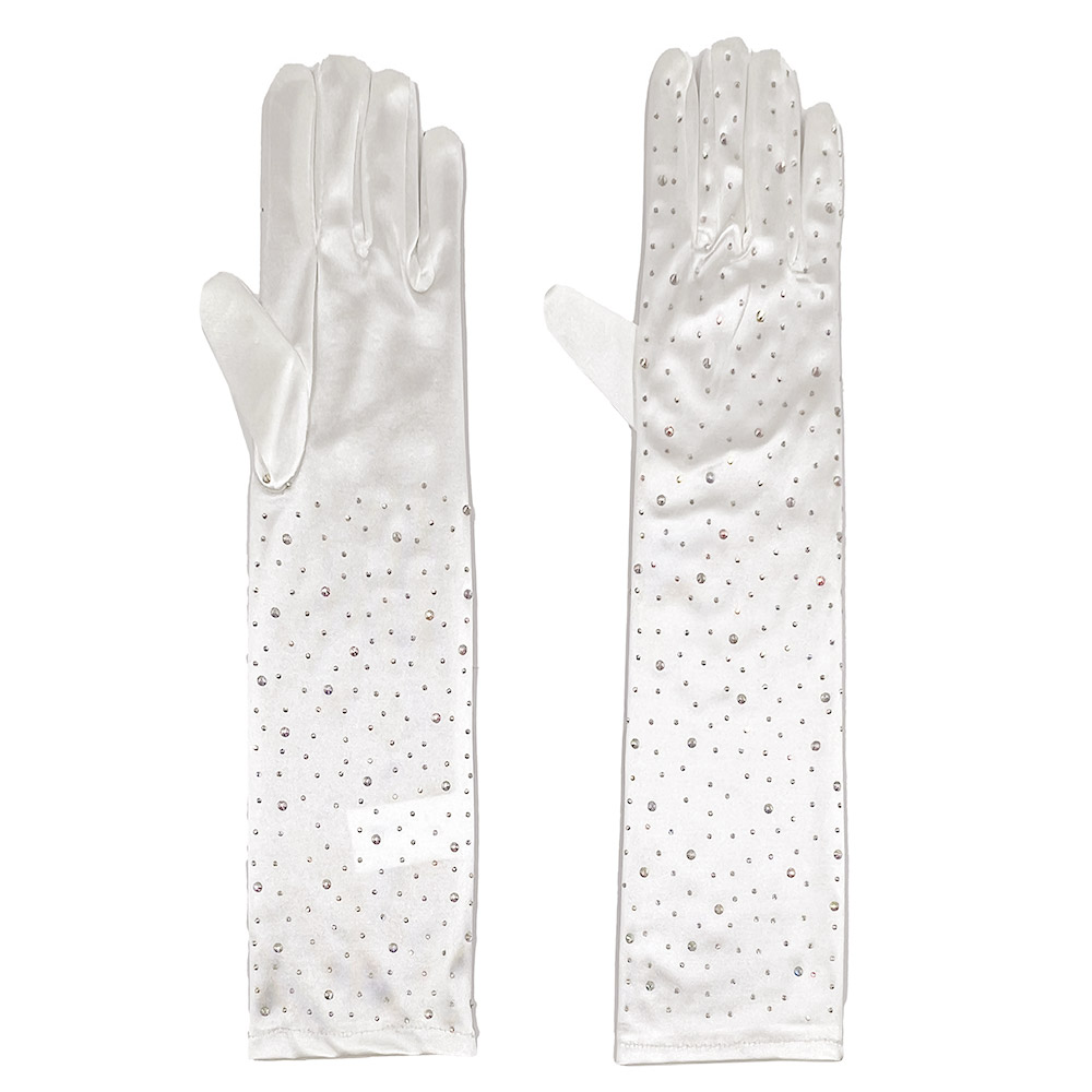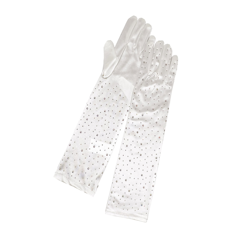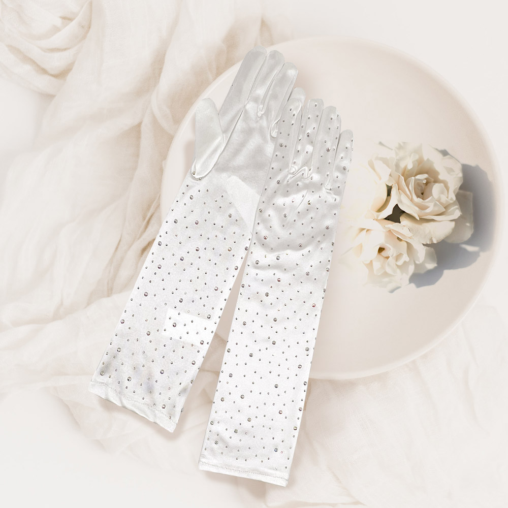 Stone Embellished Dressy Satin Long Wedding Gloves