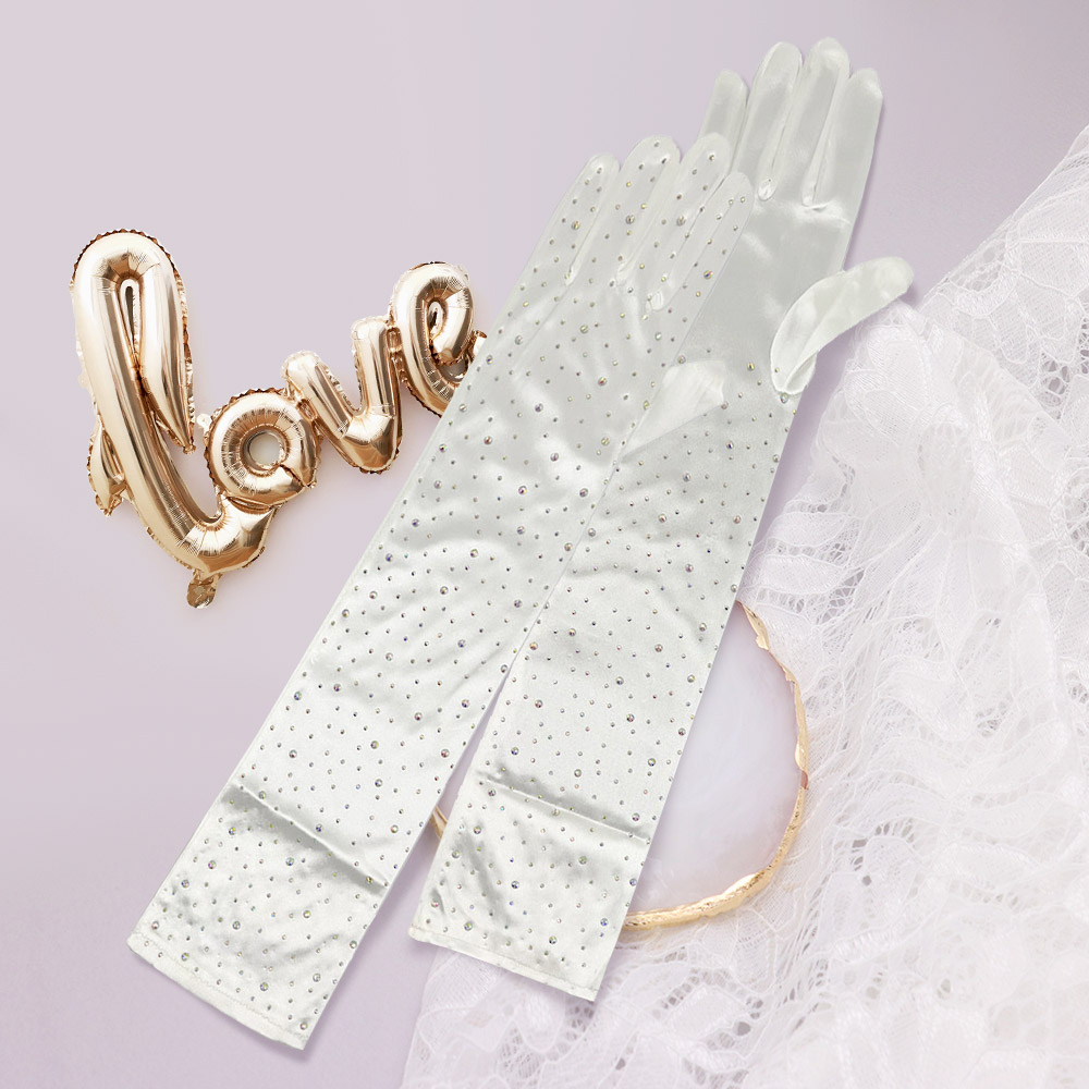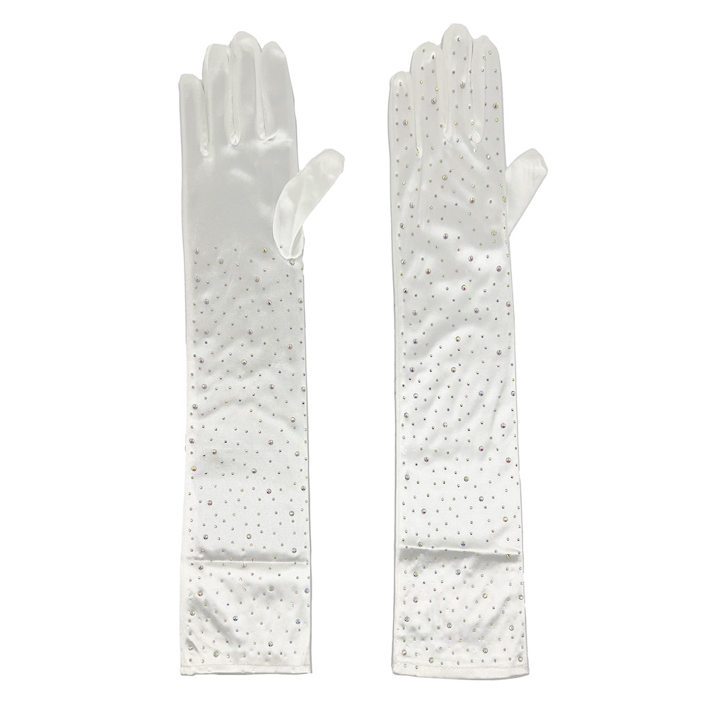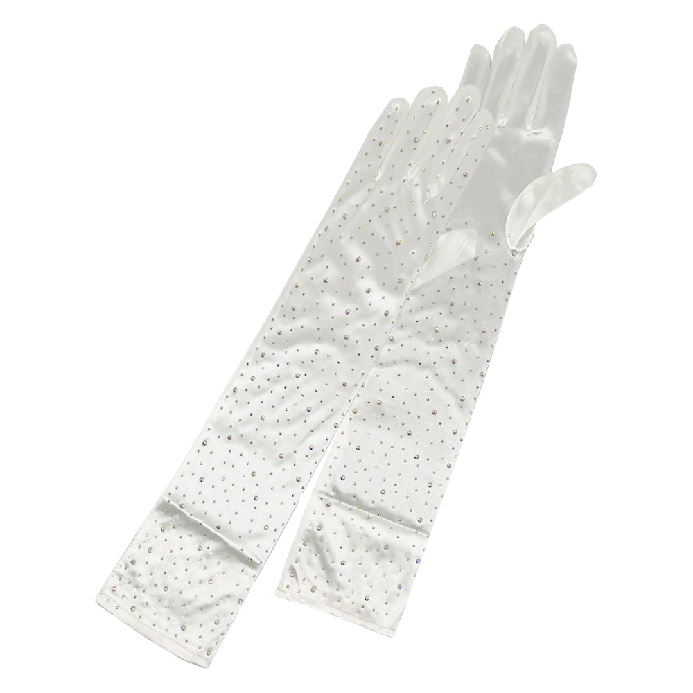 Stone Embellished Dressy Satin Long Wedding Gloves