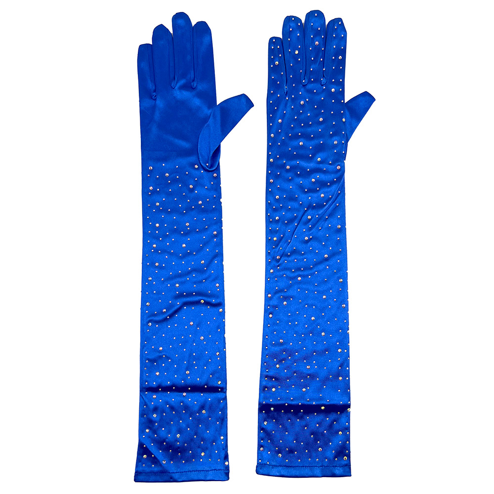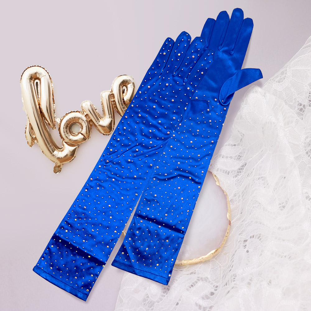 Stone Embellished Dressy Satin Long Wedding Gloves