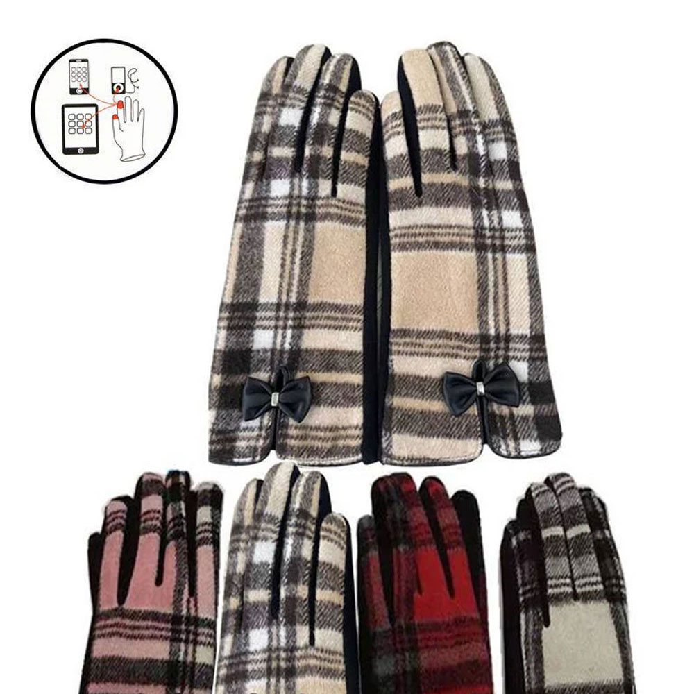 Details • Size : One Size • Material : 100% Acrylic • Chic touchscreen gloves featuring a plaid pattern and stylish bow detail, blending fashion with function. Perfect for cold weather, commuting, or everyday wear while using devices. Available in assorted plaid styles for a cozy and trendy winter accessory.