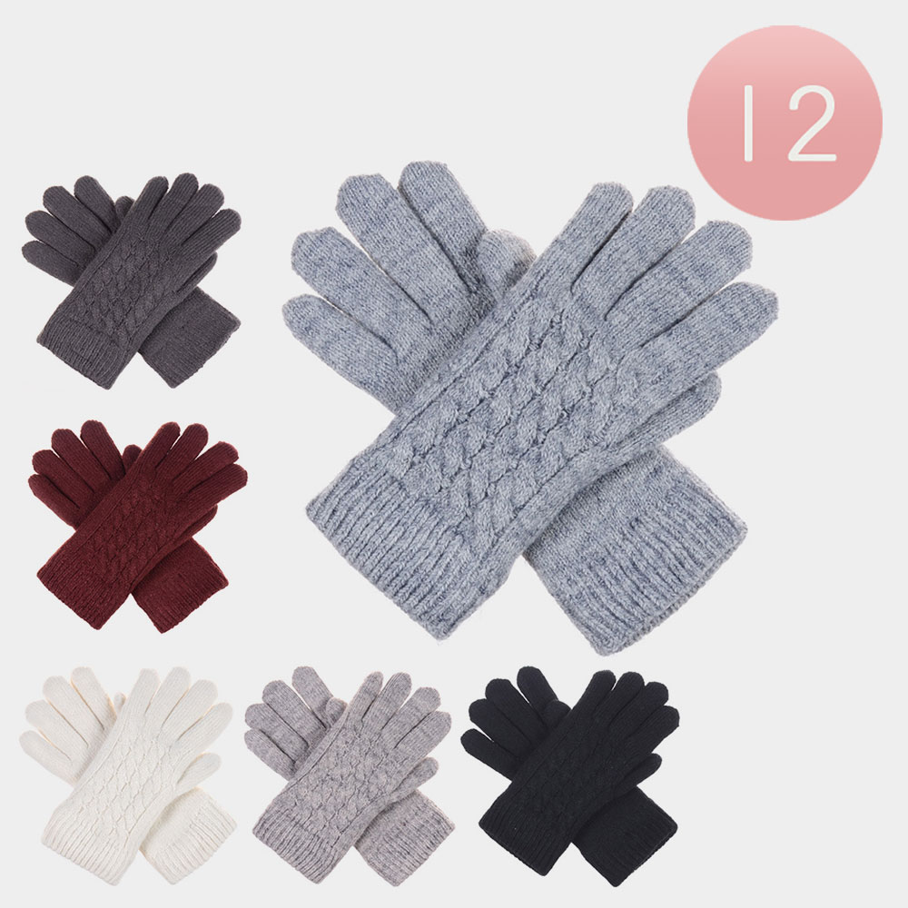 12Pairs - Faux Fur Lining Classic Cable Knit Gloves 12Pairs - Faux Fur Lining Classic Cable Knit Gloves