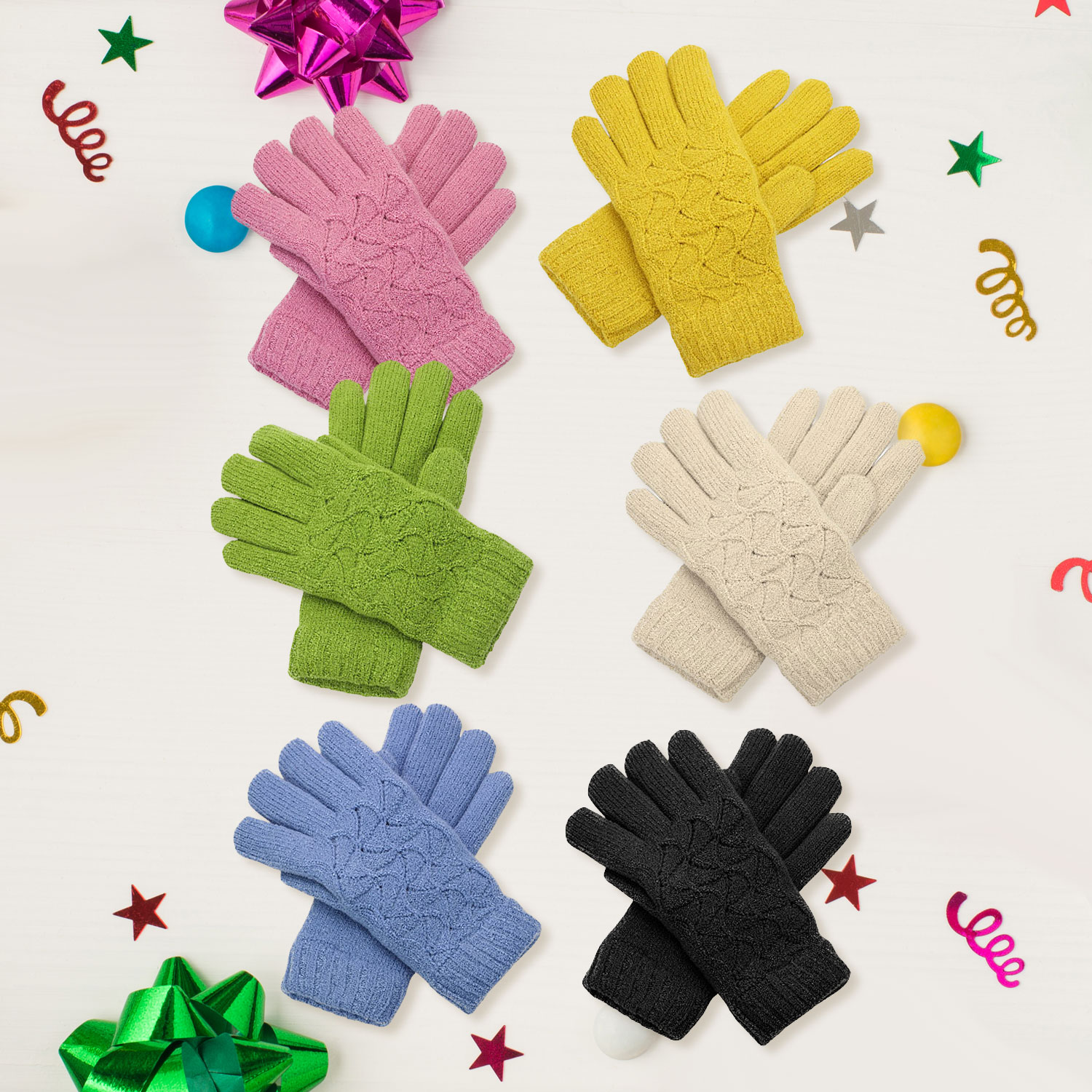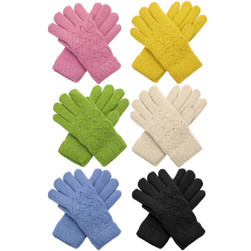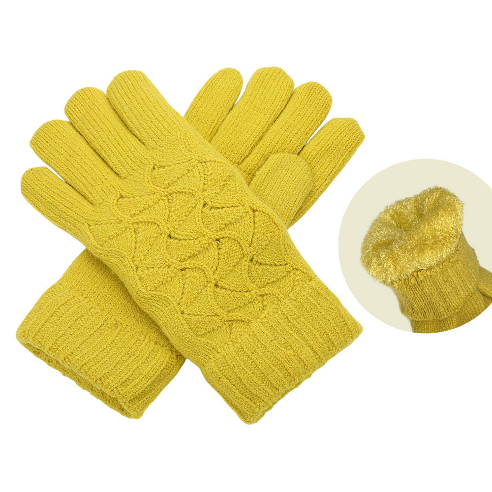 Details • Size : 8.75" L • Material : 80% Acrylic, 20% Nylon • These stylish knitted gloves feature a delicate textured pattern and ribbed cuffs for added comfort and warmth. Perfect for cold-weather days, they provide a snug fit and are available in a variety of colors to match any winter outfit or personal style.