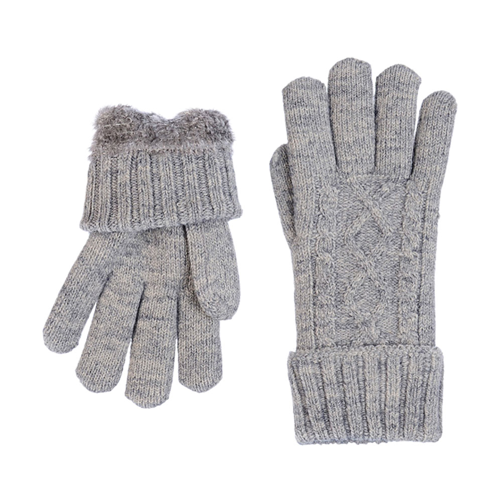 Details • Size: One Size • 80% Acrylic / 20% Nylon • Lining: 100% Nylon • Cozy cable knit gloves featuring a classic textured pattern and soft folded cuffs for added warmth. Designed for comfort and everyday wear, these gloves combine timeless style with practicality, making them a must-have accessory for cold-weather outfits.