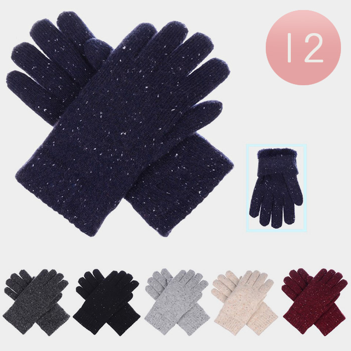 12Pairs - Solid Knit Touch Smart Winter Gloves