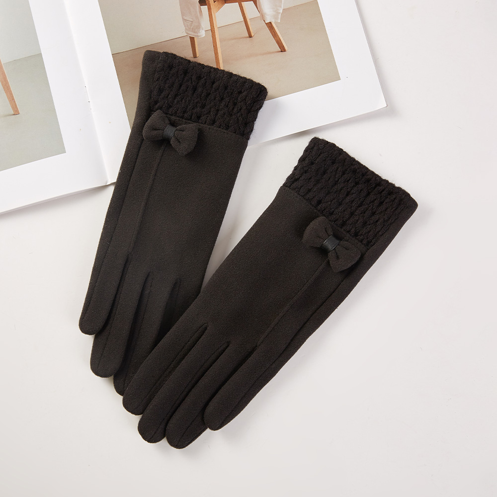 Details • Size : One Size • Smart Touch • Material : 100% Polyester • Cozy winter gloves featuring a textured knitted cuff and delicate bow accent for added charm. Soft and comfortable, these stylish gloves provide warmth while adding a feminine touch, perfect for casual wear or complementing dressy cold-weather outfits.