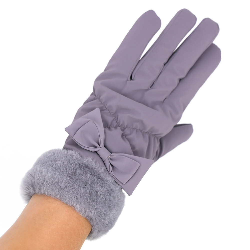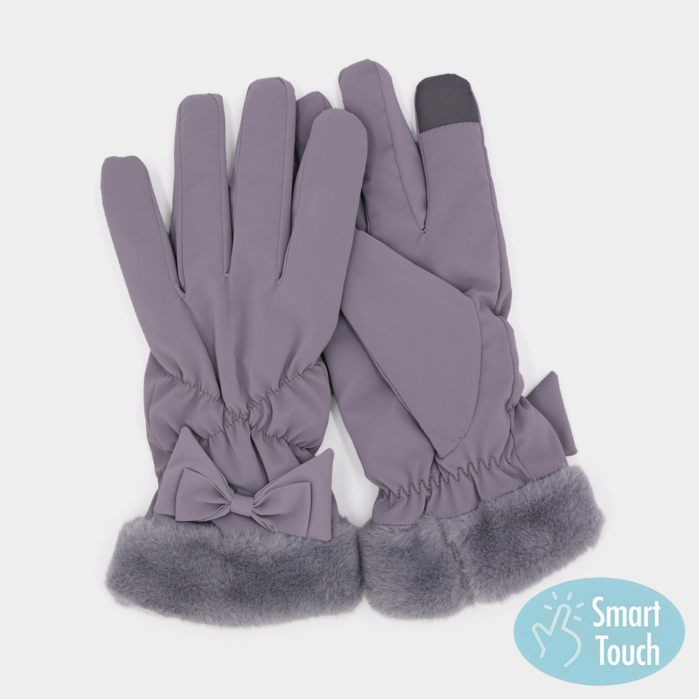 Bow And Faux Fur Cuff Fleece Smart Touch Gloves