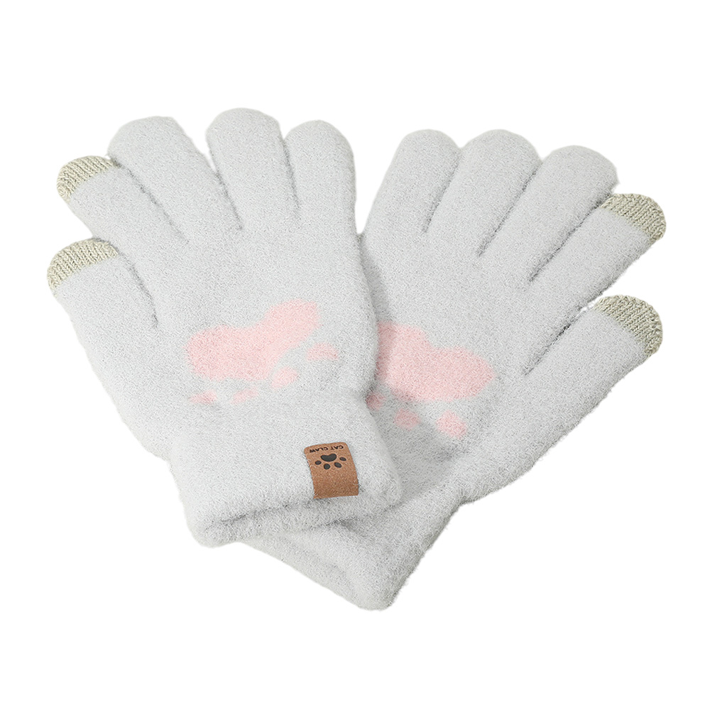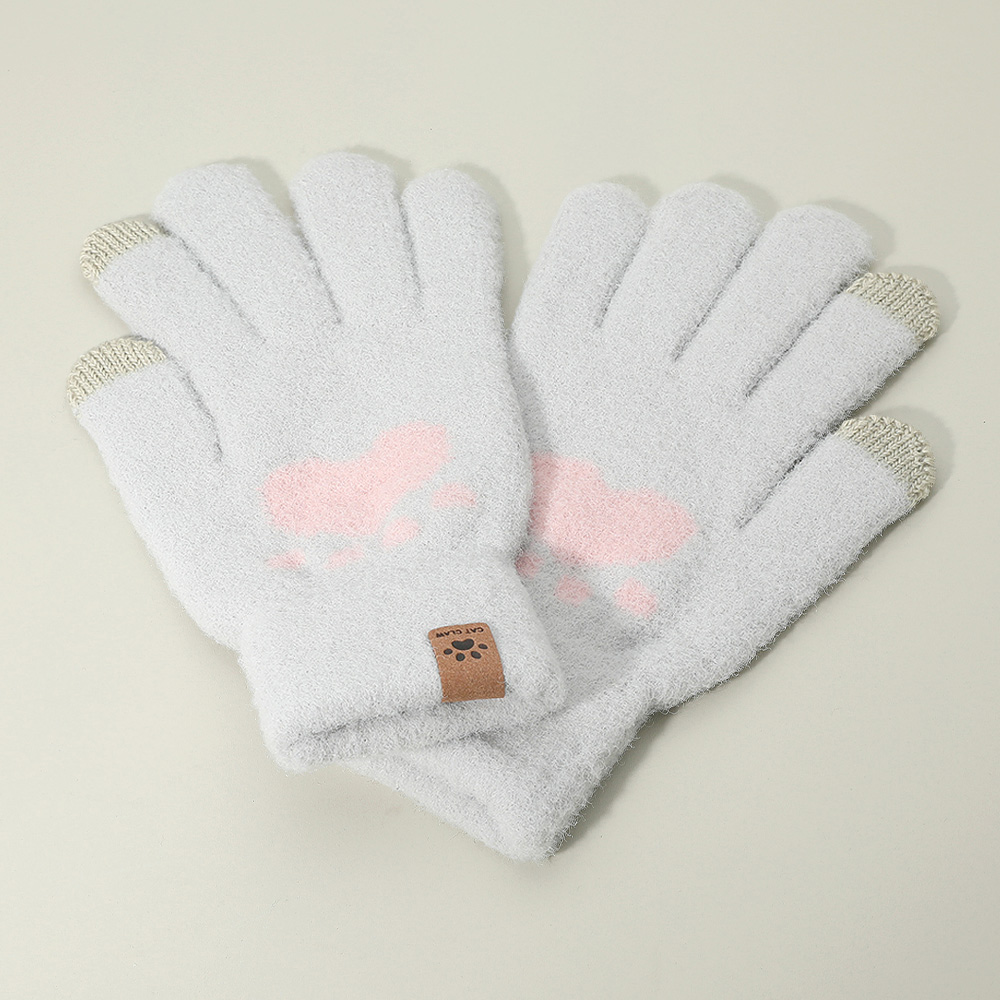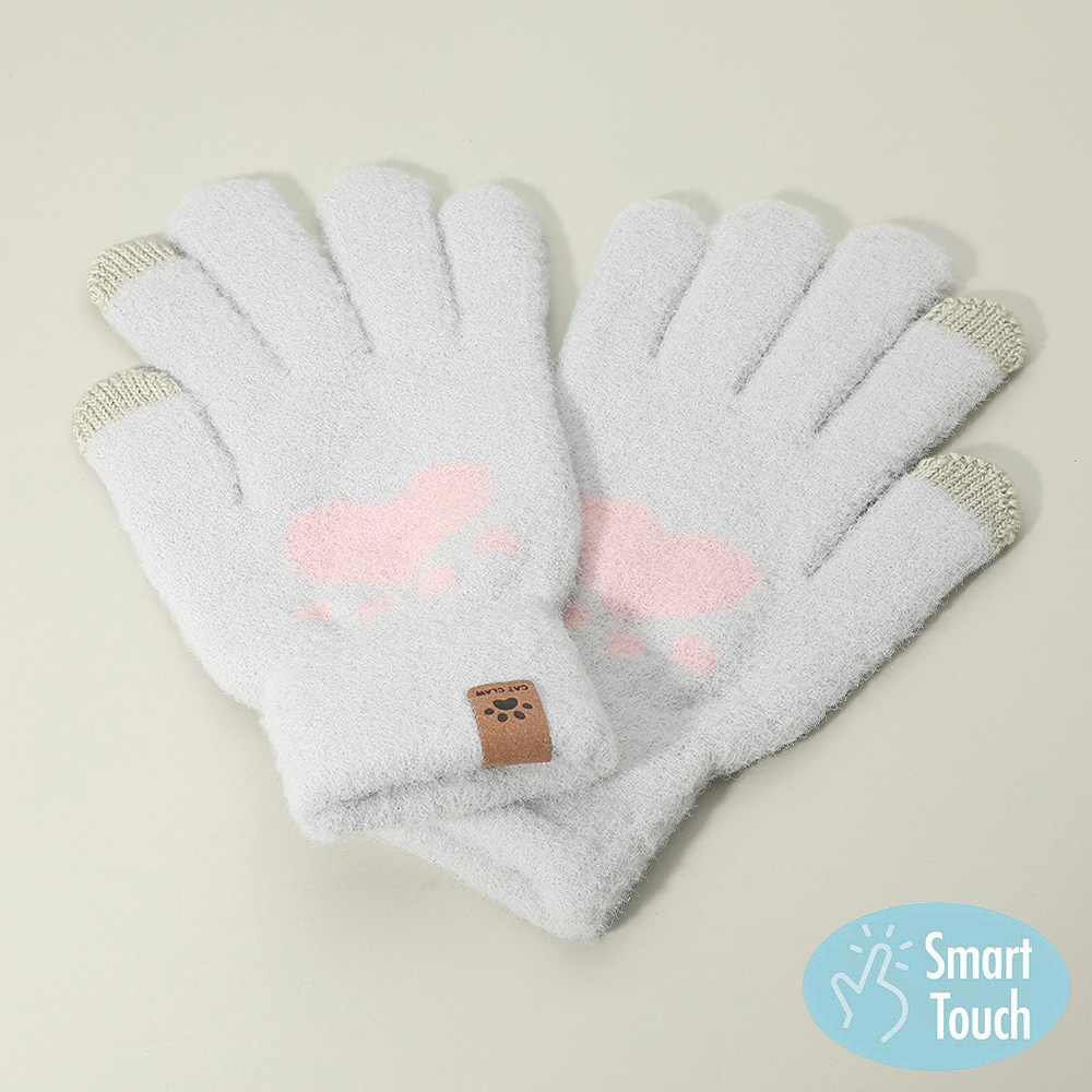 Details • Size : One Size • Material : 100% Polyester • Smart Touch • Stay warm and stylish with cat paw smart touch gloves featuring an adorable heart and paw print design. Made for comfort and functionality, these cozy gloves allow you to use your smartphone while keeping hands warm, making them perfect winter accessories for cat lovers and gift giving.