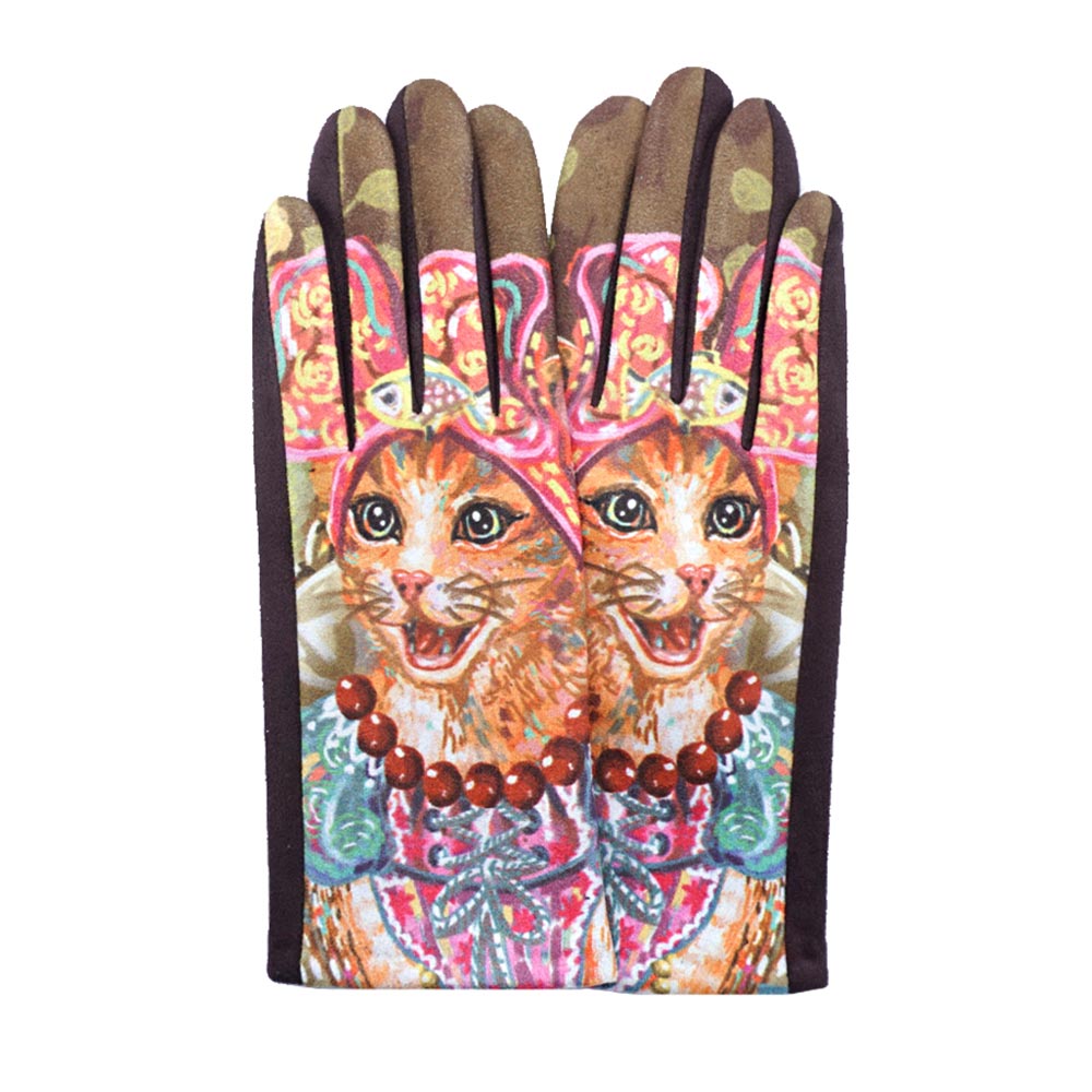 Details • Size : One Size • Material : 100% Polyester • Smart Touch • Express your love for cats with these smart touch gloves featuring a vibrant cat duo art print. Designed for both style and function, they keep hands warm while supporting touchscreen use. A perfect blend of playful charm and everyday practicality, making them an ideal accessory for cat lovers.
