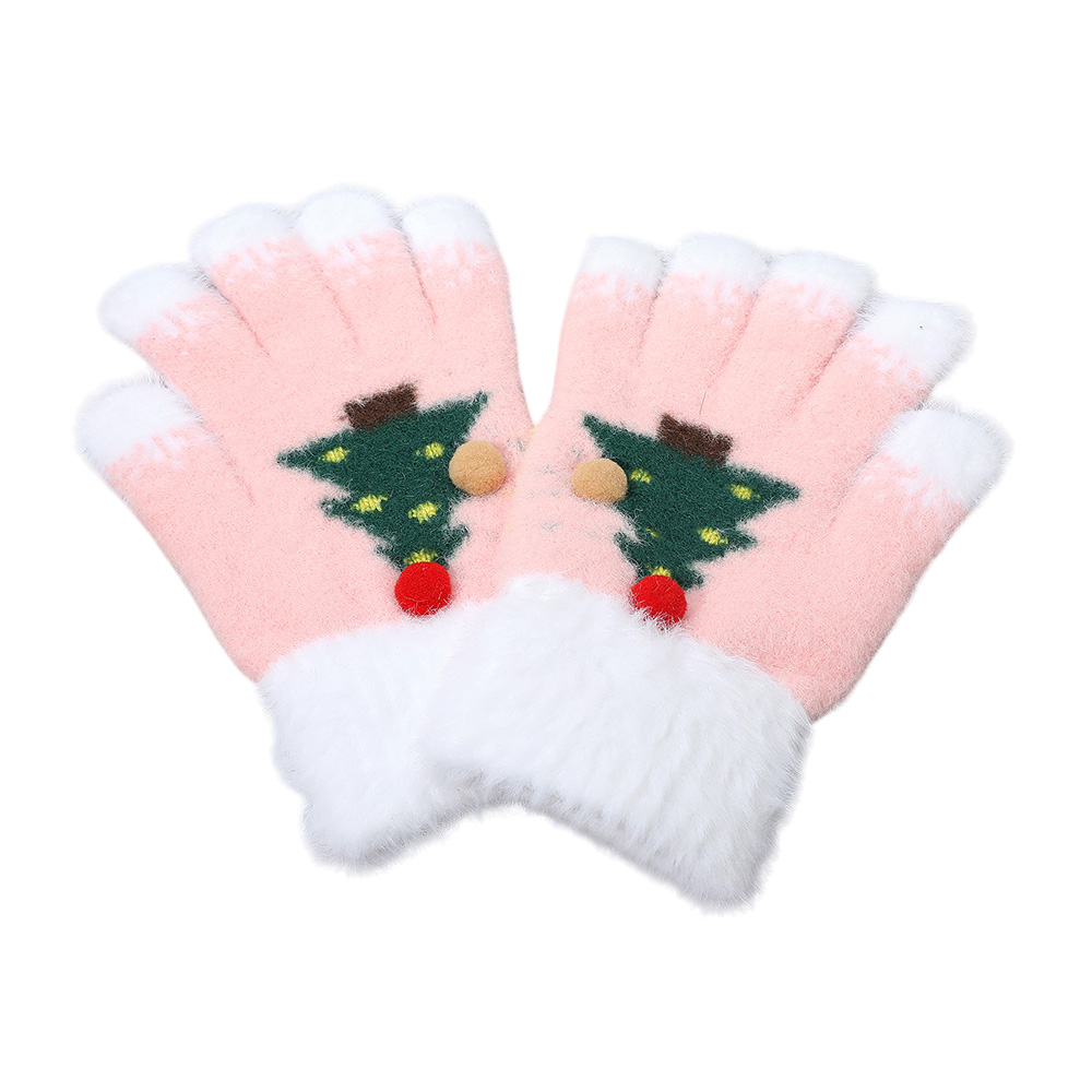 Cozy Fuzzy Pom Pom Christmas Tree Accent Winter Gloves