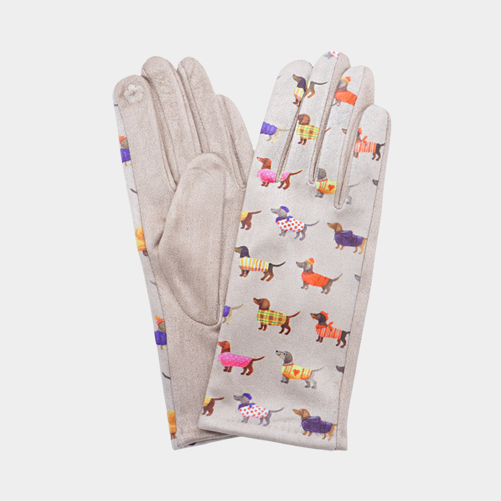 Details • Size : One Size • Material : 100% Polyester • Smart Touch • Stay warm and stylish with these smart touch gloves featuring an all-over dachshund print. Comfortable, functional, and touchscreen friendly, they add a charming pet-inspired touch to your winter accessories.