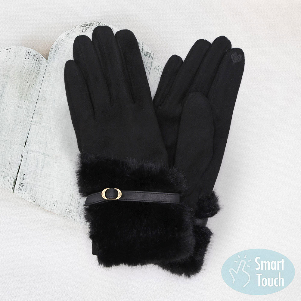 Faux Fur And Strap Cuff Smart Touch Gloves