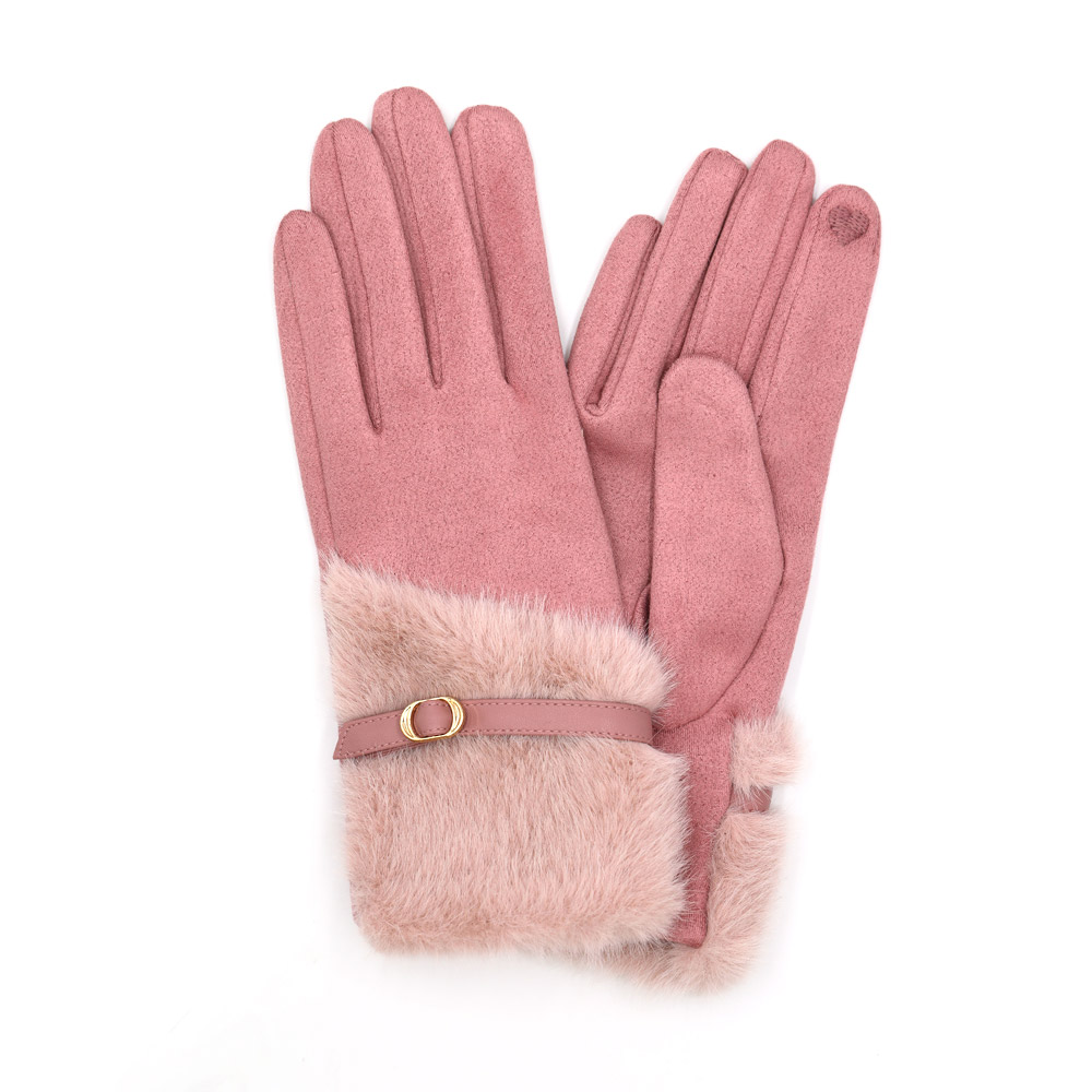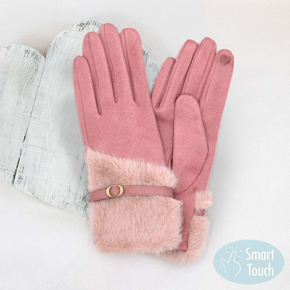 Faux Fur And Strap Cuff Smart Touch Gloves
