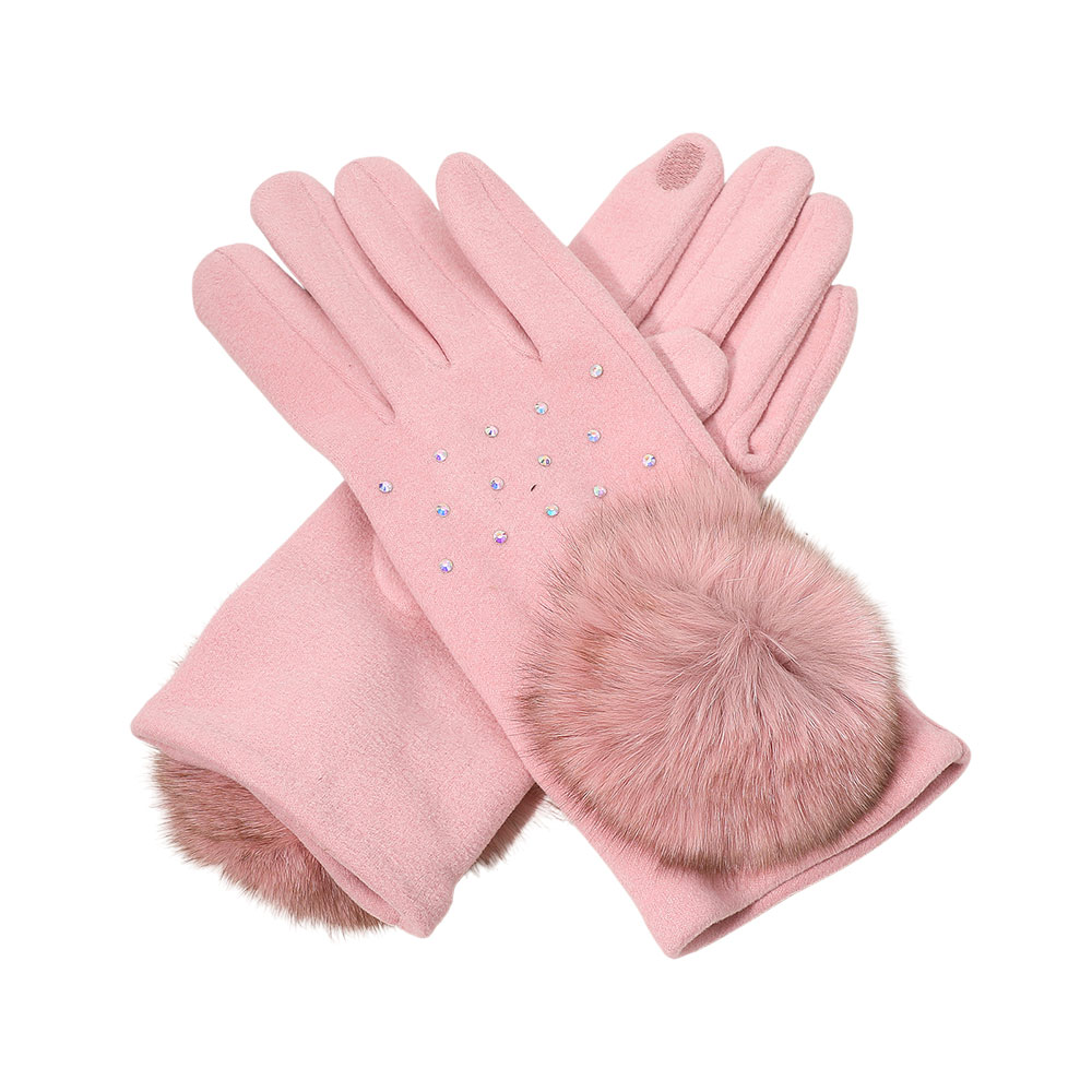 Faux Fur Cuff Pom Rhinestone Embellished Smart Touch Winter Gloves