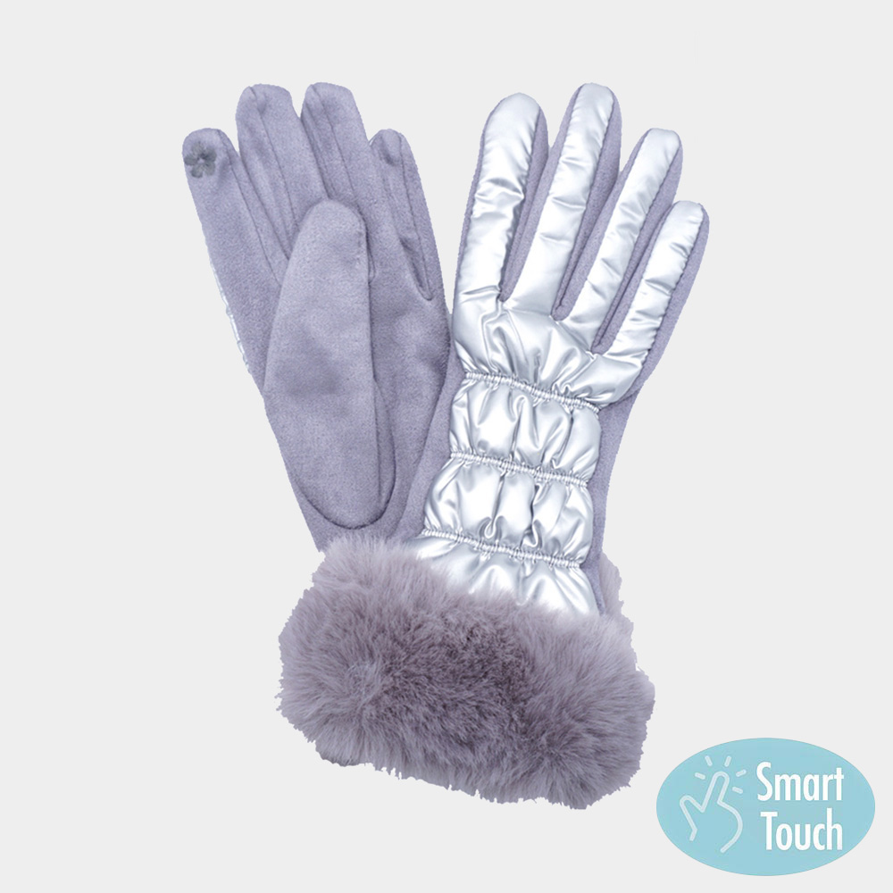 Faux Fur Cuff Puffer Smart Touch Gloves