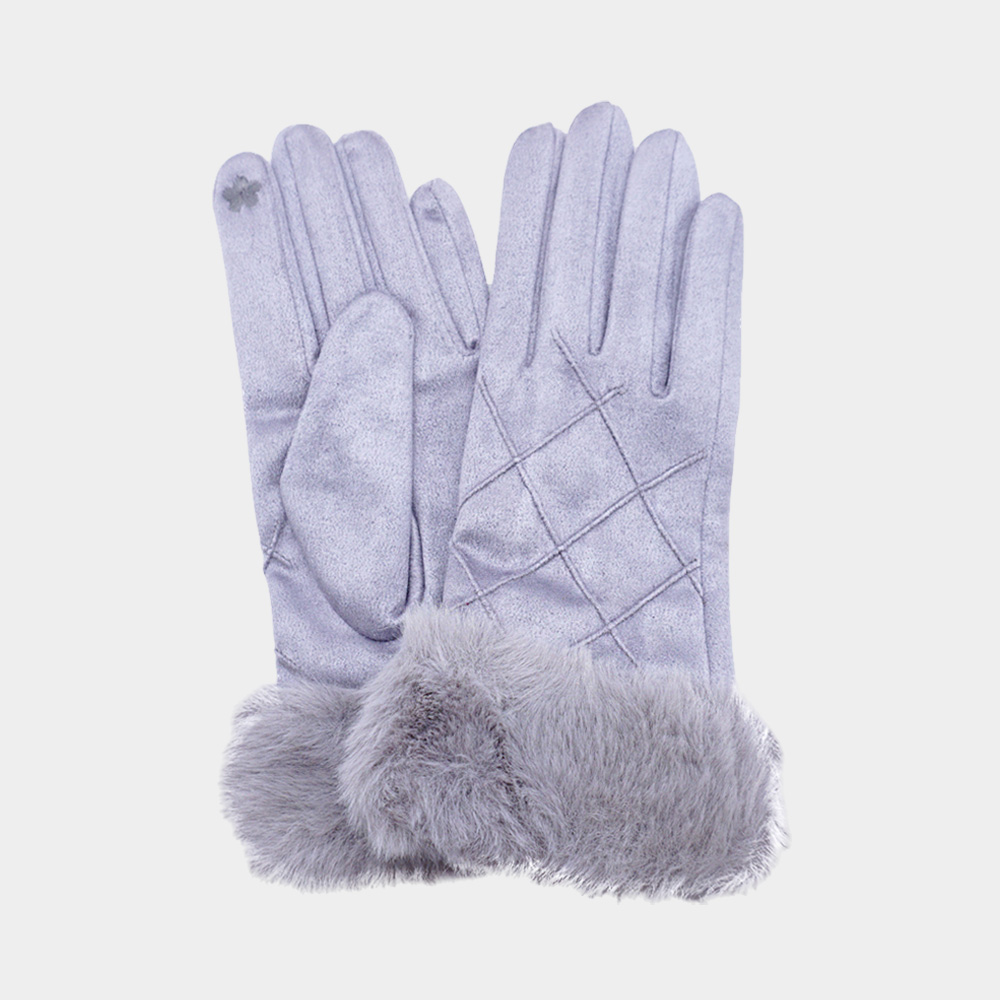 Faux Fur Cuff Quilted Smart Touch Gloves