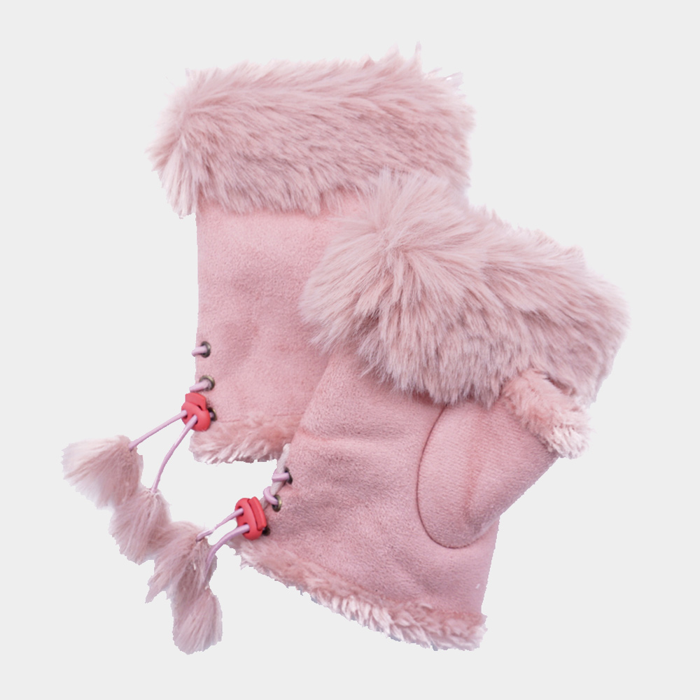 • Cozy and stylish, these faux fur trim gloves feature a fingerless mitten design with lace-up sides and playful pom pom accents. Soft and warm, they keep hands comfortable while allowing flexibility, making them the perfect accessory for everyday winter wear and gifting.