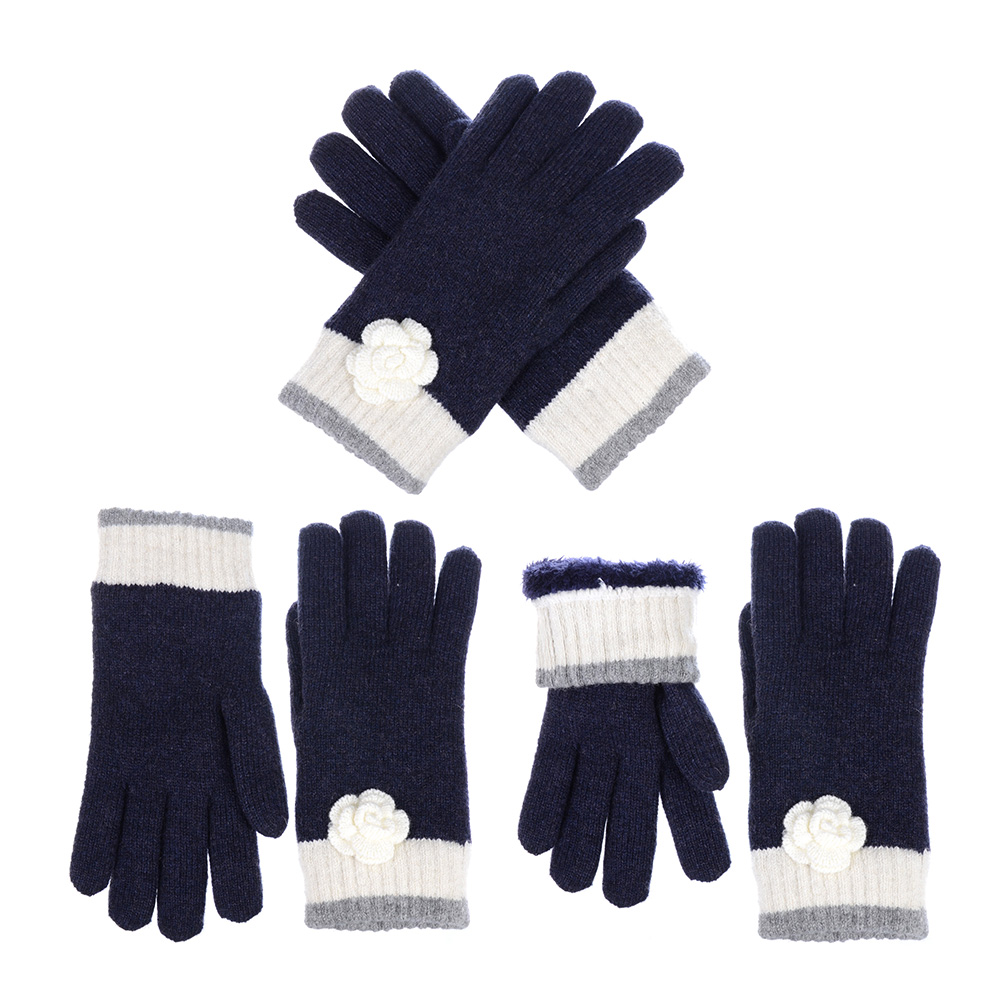 Details • Size : One Size • Material : 70% Acrylic, 30% Wool • Lining Material : 100% Nylon • Soft knit gloves featuring a delicate floral accent and contrast cuff design for a touch of charm and warmth. Perfect for keeping hands cozy during chilly days, these stylish gloves blend comfort with elegance, making them an ideal cold-weather accessory.