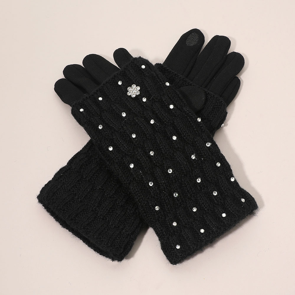 Floral Rhinestone Point Smart Touch Knit Winter Gloves