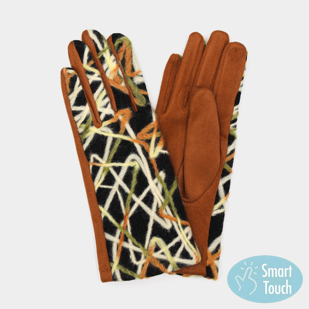 Geometric Multi Color Embroidered Smart Touch Gloves