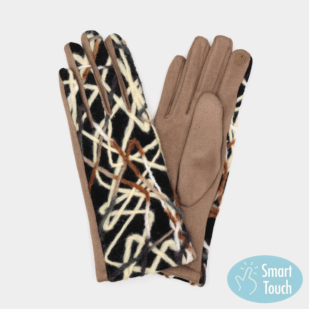 Geometric Multi Color Embroidered Smart Touch Gloves