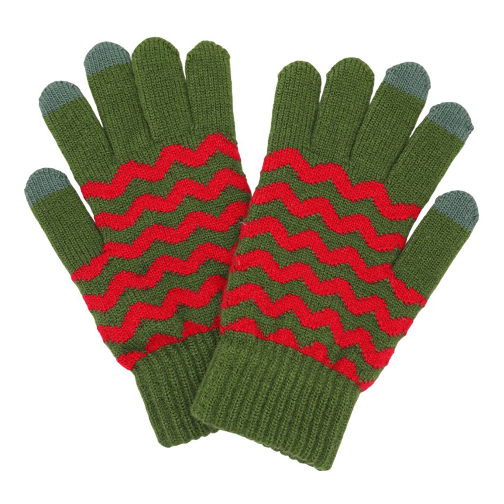 Details • Size : One Size • Material : 70% Polyester, 30% Wool • Smart Touch • Cozy knit touchscreen gloves with a bold wave pattern, perfect for winter days. Enjoy full mobile device use while keeping your hands warm and stylish with these functional and comfortable gloves.