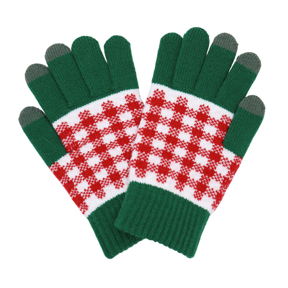 Details • Size : One Size • Material : 70% Polyester, 30% Wool • Smart Touch • Stay warm and connected with these knit touchscreen gloves featuring a festive plaid pattern. Designed for comfort and functionality, they allow you to use your devices without removing your gloves during chilly days.