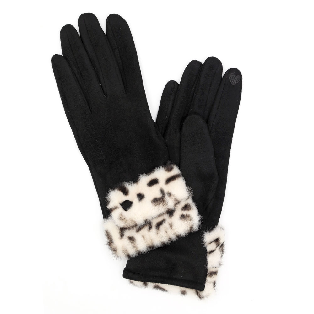 Leopard Faux Fur Cuff Smart Touch Gloves
