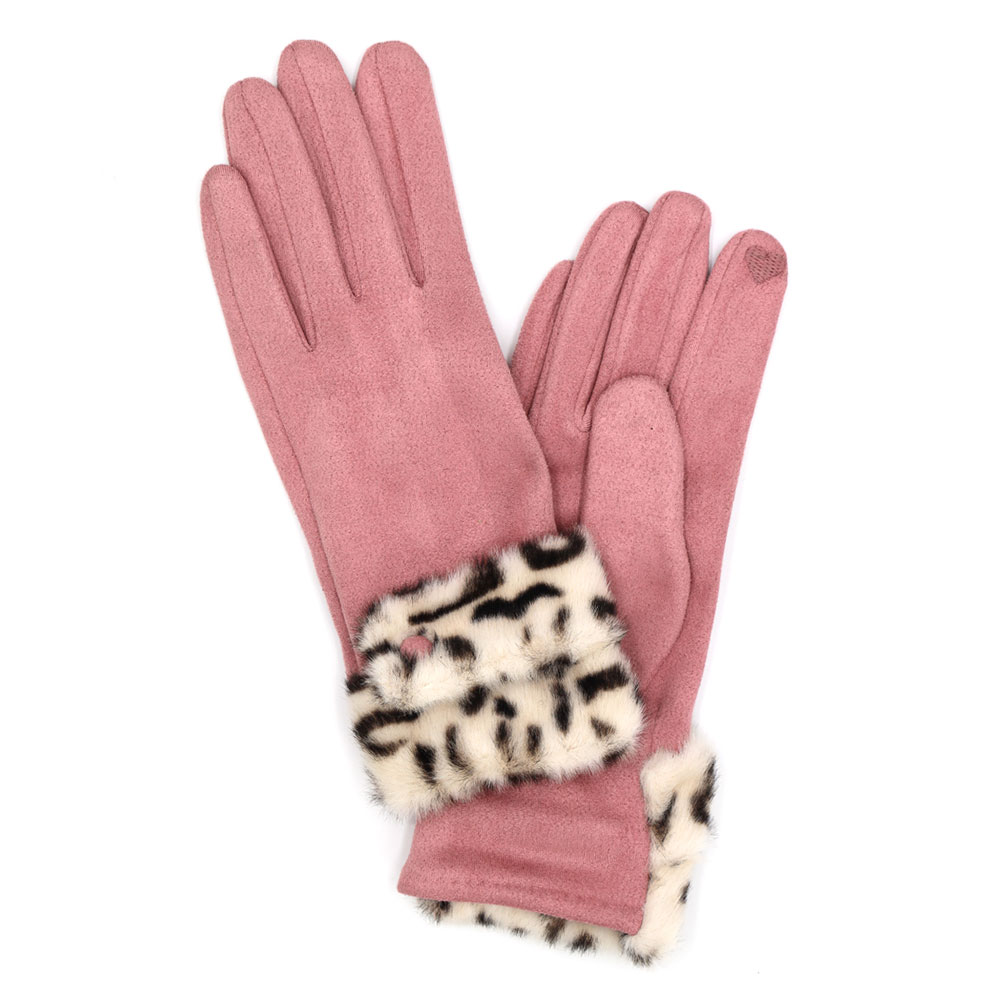 Leopard Faux Fur Cuff Smart Touch Gloves