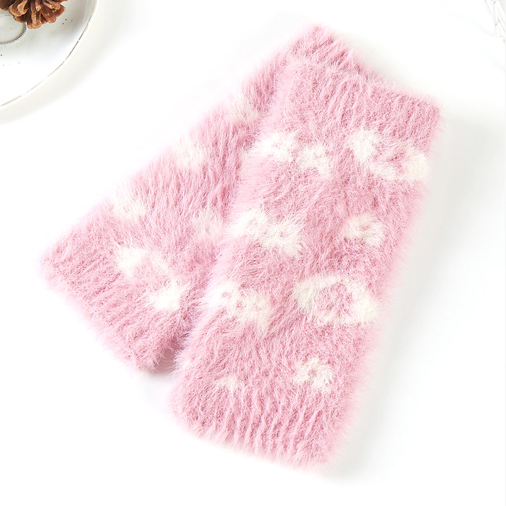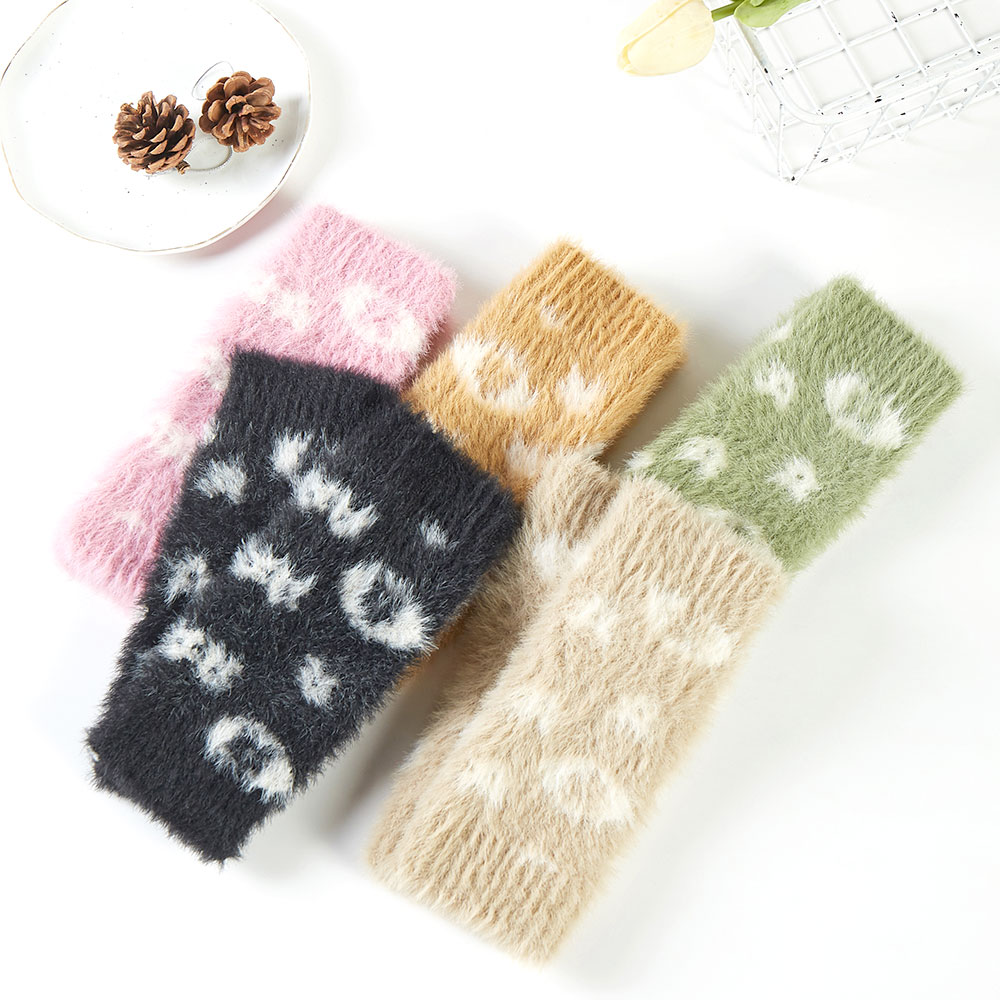 Leopard Patterned Faux Fur Fingerless Gloves / Wrist Warmer