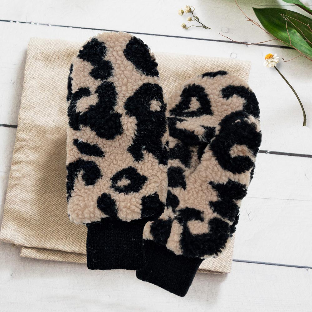 Leopard Teddy Pop-Top Mitten Gloves