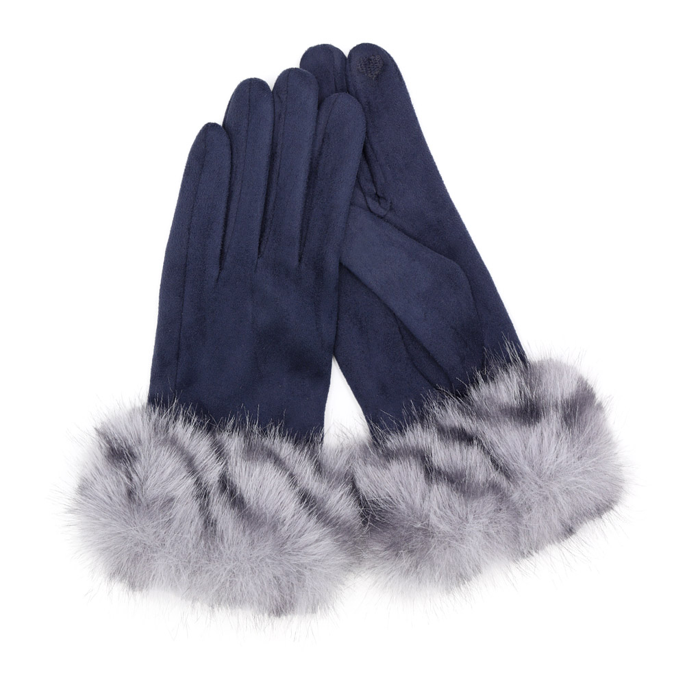Mixed Color Faux Fur Cuff Smart Touch Gloves