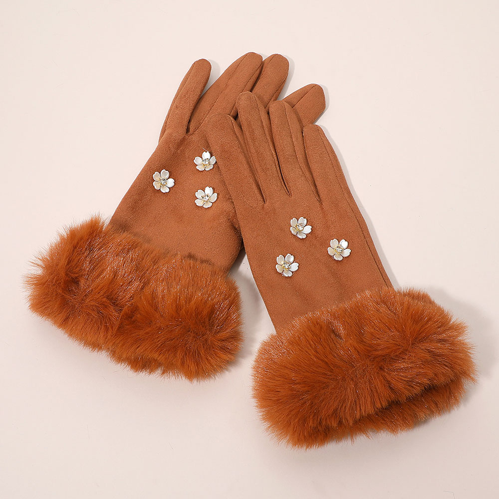 • Elegant smart touch gloves featuring faux fur cuffs and delicate floral embellishments for a chic, feminine touch. Designed for comfort and style, these gloves keep hands warm while allowing easy touchscreen use, perfect for everyday wear or adding flair to winter outfits.