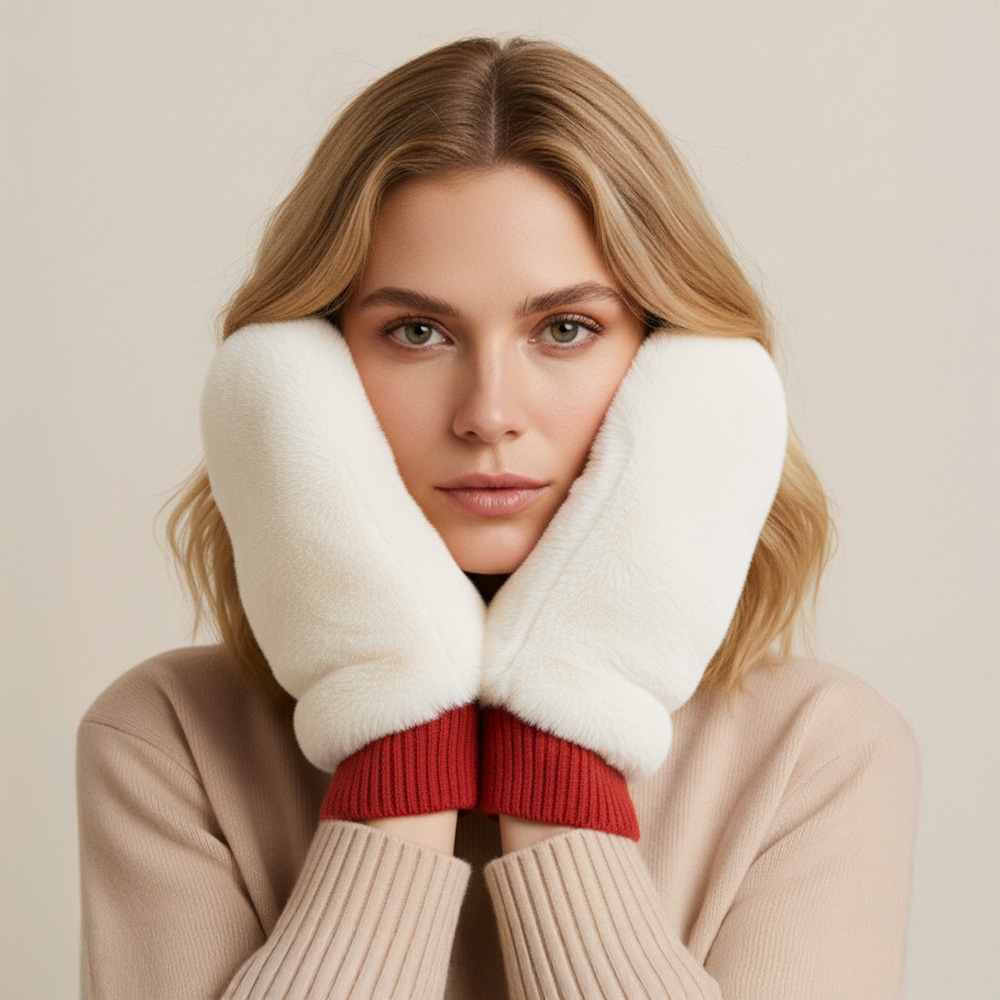 • Cozy plush mittens featuring a soft, fuzzy exterior and snug knit cuffs for extra warmth and comfort. Perfect for cold weather days, these mittens combine style and functionality, keeping your hands warm while adding a cute, playful touch to your winter accessories collection.