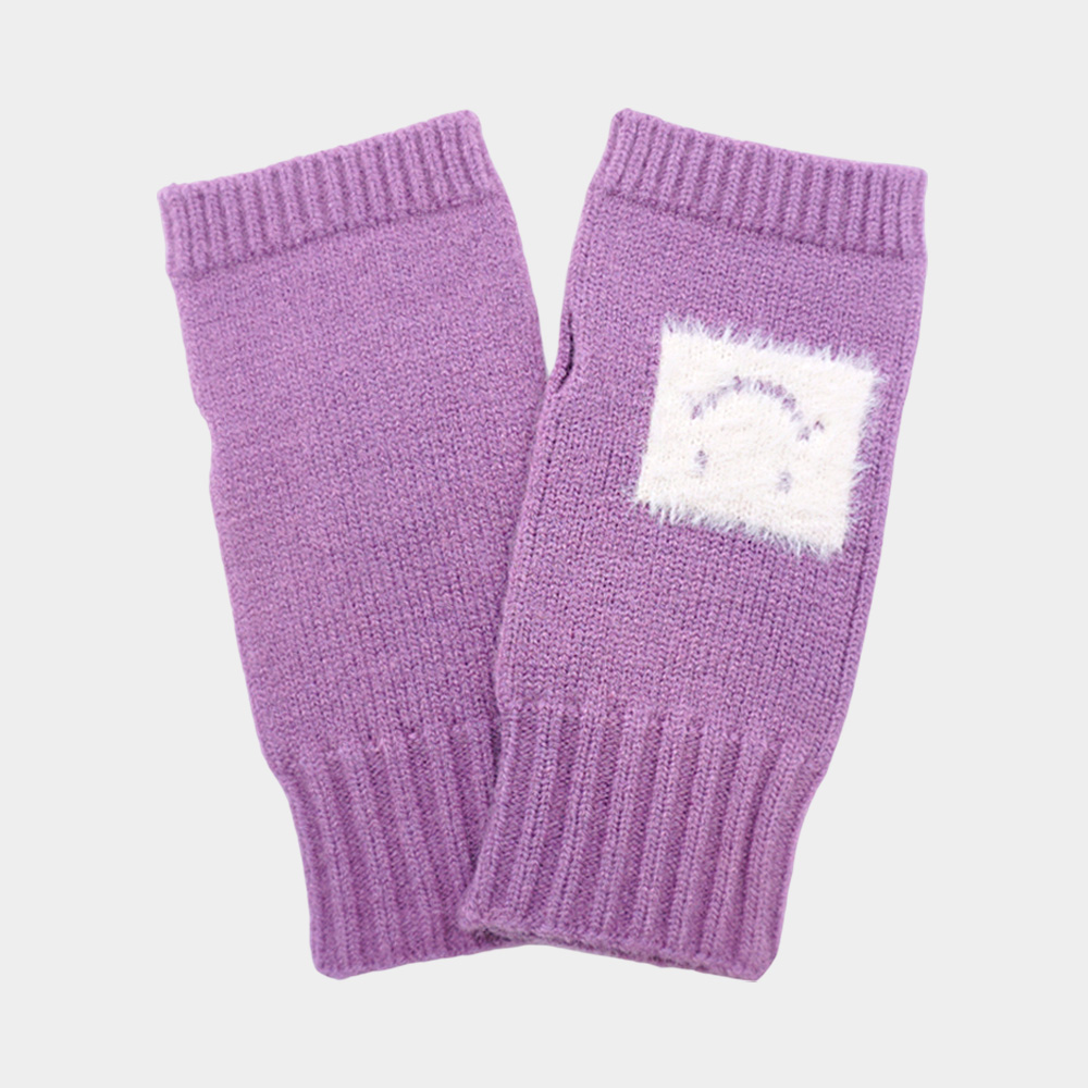 Details • Size : One Size • Material : 100% Polyester • Soft fingerless knit gloves featuring a playful smiley detail, designed for warmth and comfort while keeping your fingers free. Perfect for layering in cooler weather, they offer both practicality and casual charm for everyday wear.