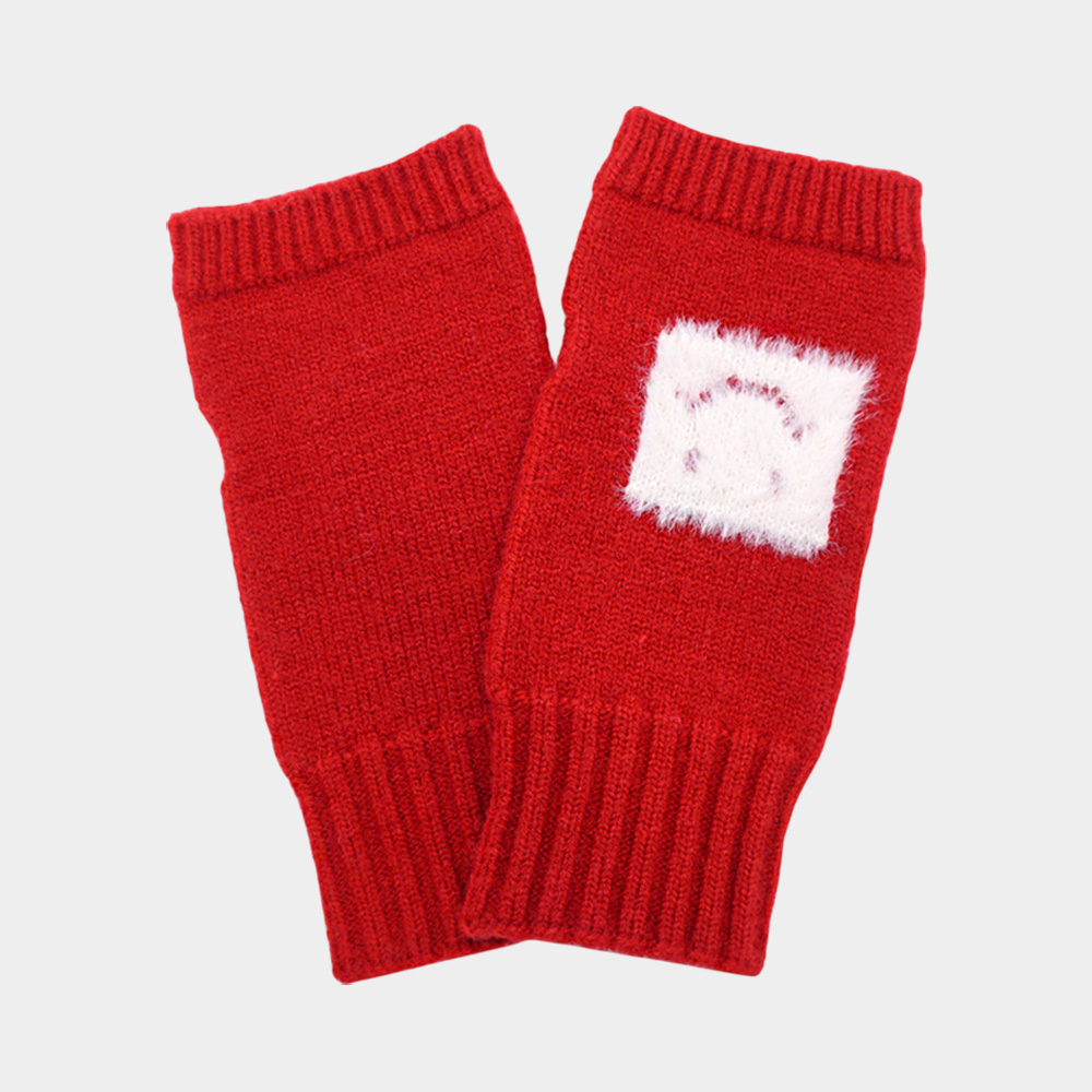 Details • Size : One Size • Material : 100% Polyester • Soft fingerless knit gloves featuring a playful smiley detail, designed for warmth and comfort while keeping your fingers free. Perfect for layering in cooler weather, they offer both practicality and casual charm for everyday wear.